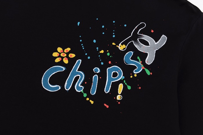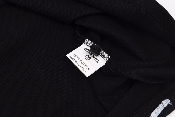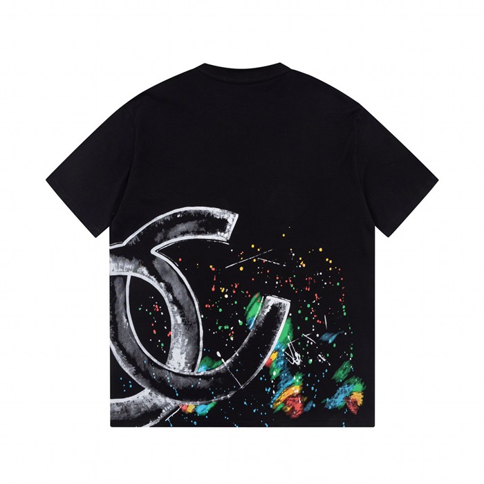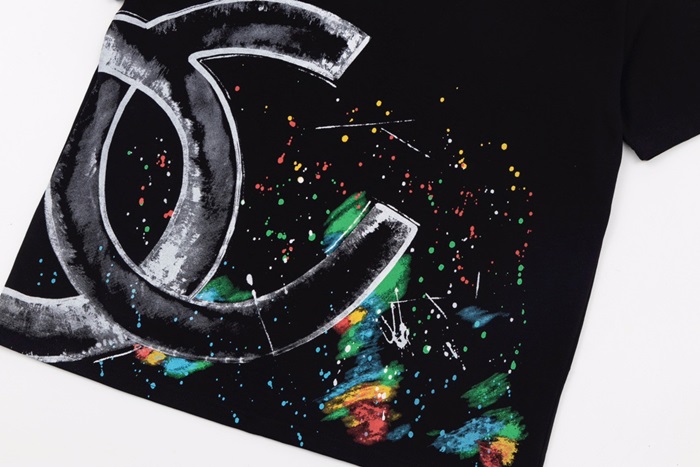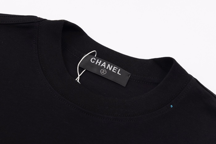 シャネルユニセックスクルーネックブラック半袖Tシャツh103