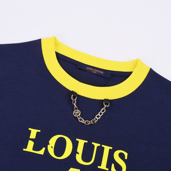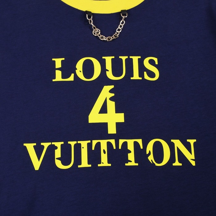 ルイヴィトンメンズネイビークルーネック半袖Tシャツv868