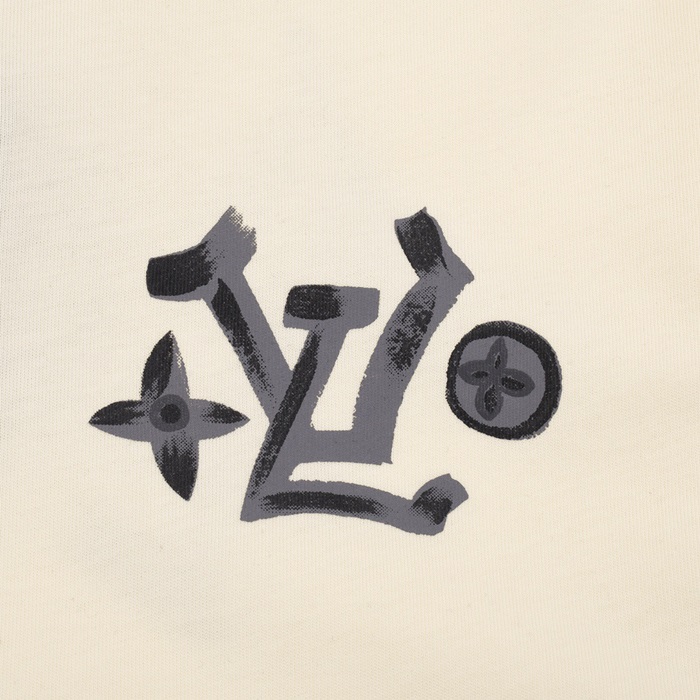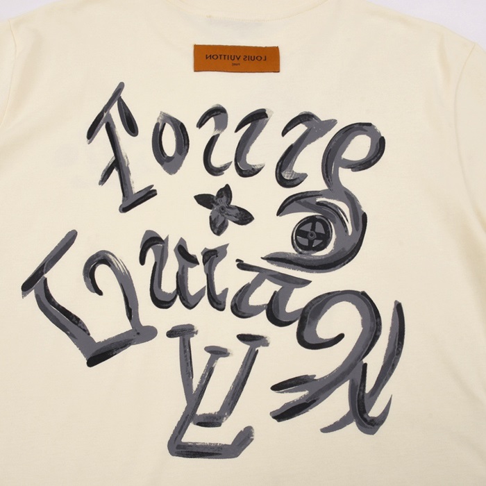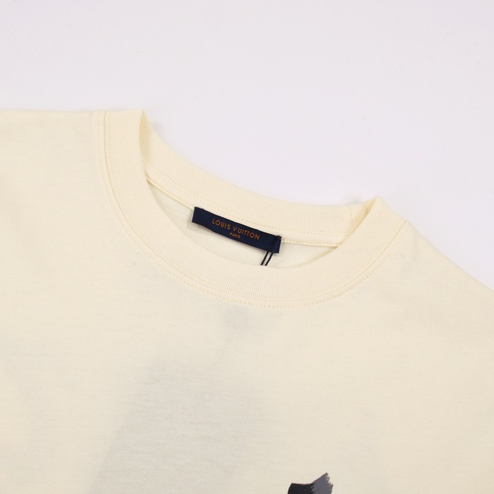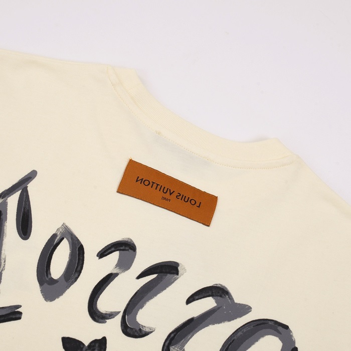 ルイヴィトンメンズアイボリークルーネック半袖Tシャツv869