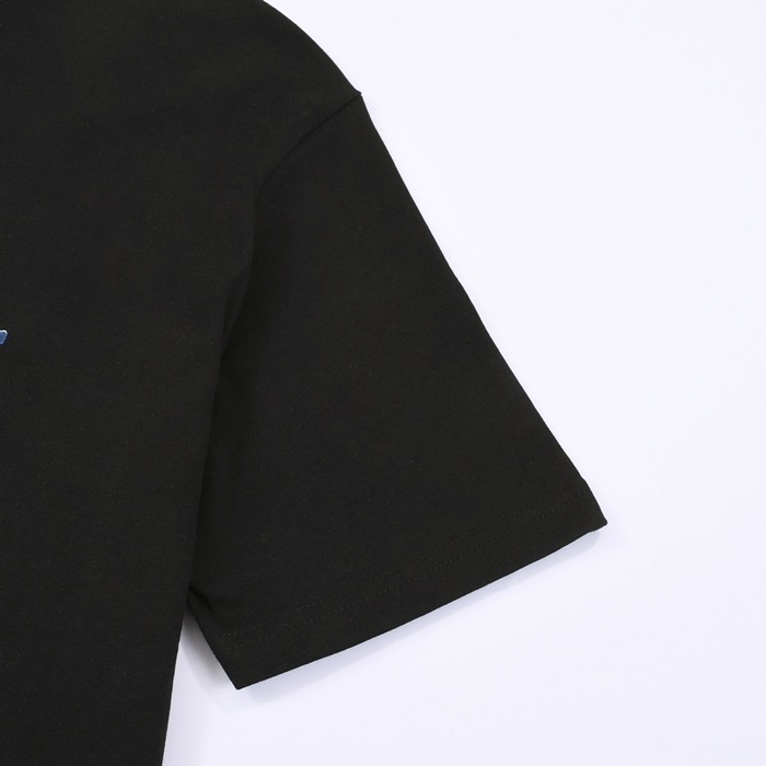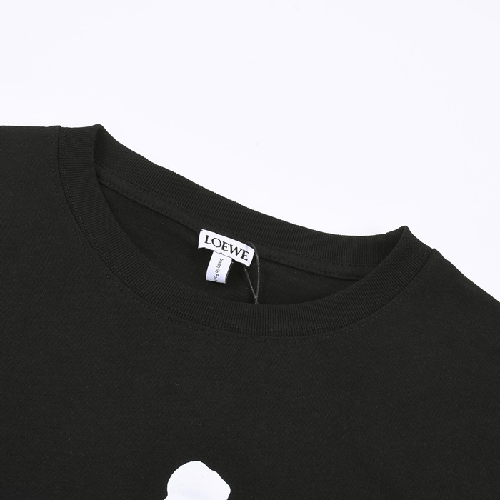 ロエベユニセックスイニシャルブラック半袖Tシャツe719