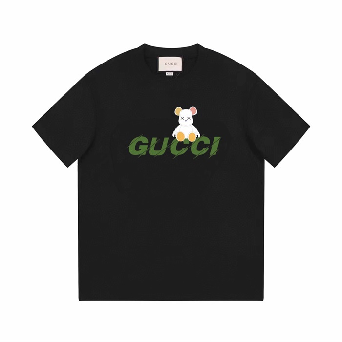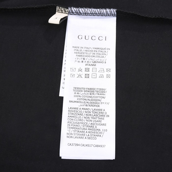 グッチユニセックスブラッククルーネック半袖Tシャツu651