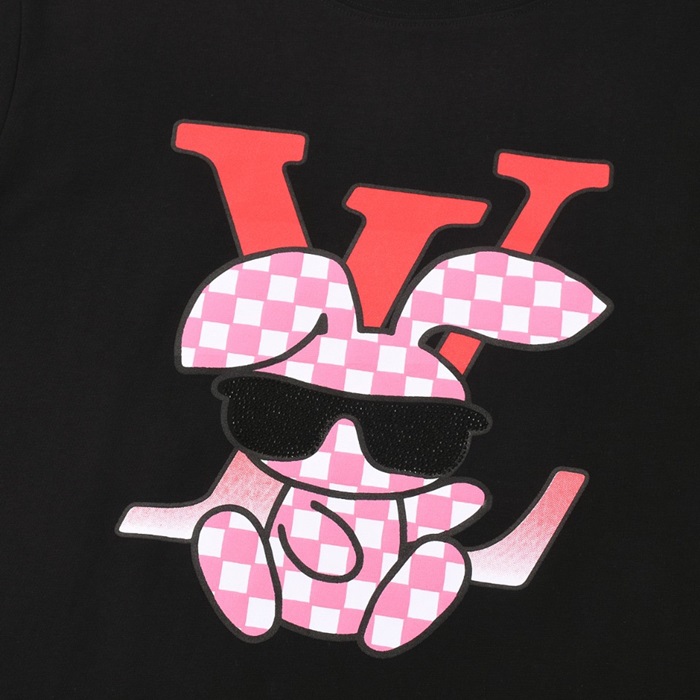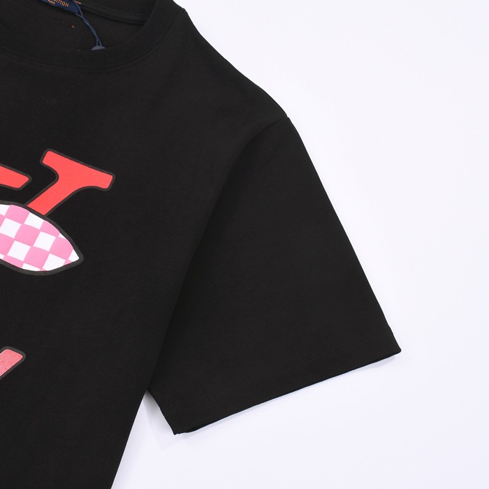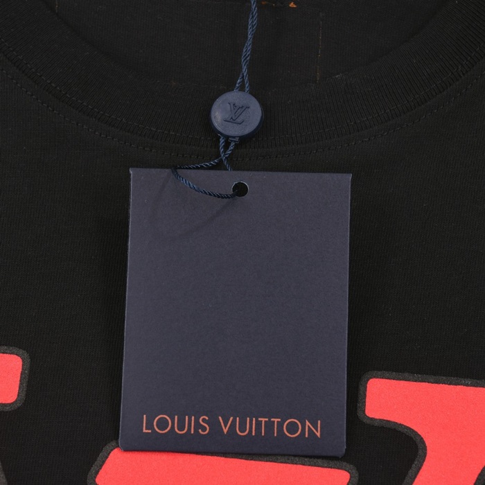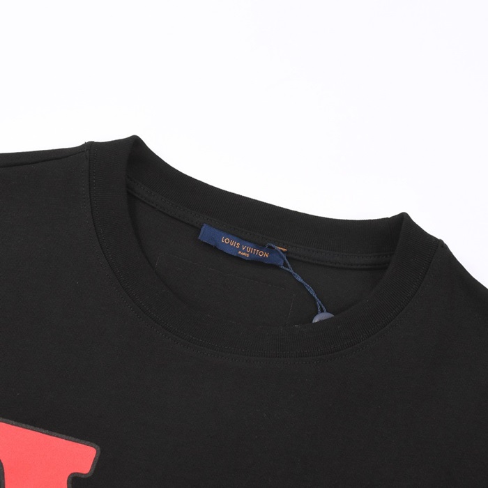ルイヴィトンメンズブラッククルーネック半袖Tシャツv876