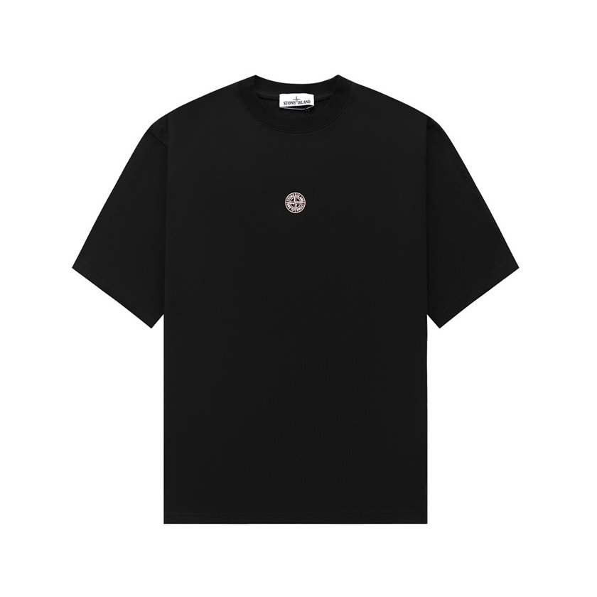 ストーンアイランドメンズブラッククルーネック半袖Tシャツt67