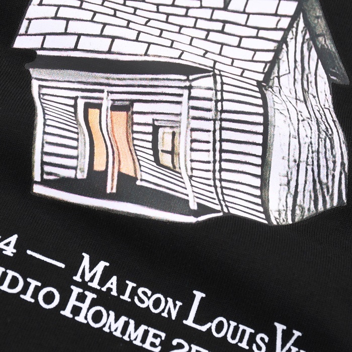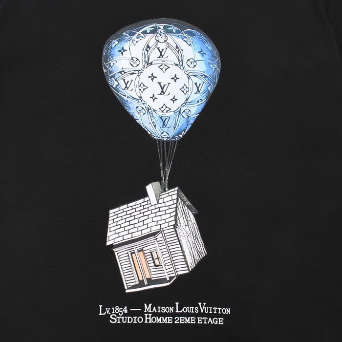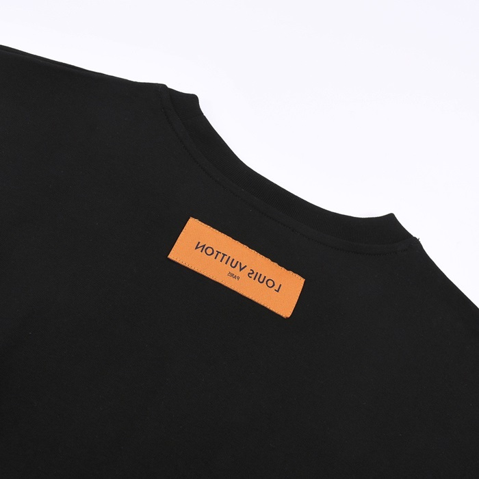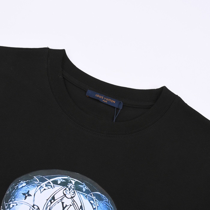 ルイヴィトンメンズブラッククルーネック半袖Tシャツv894
