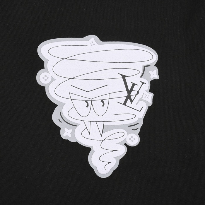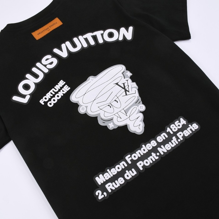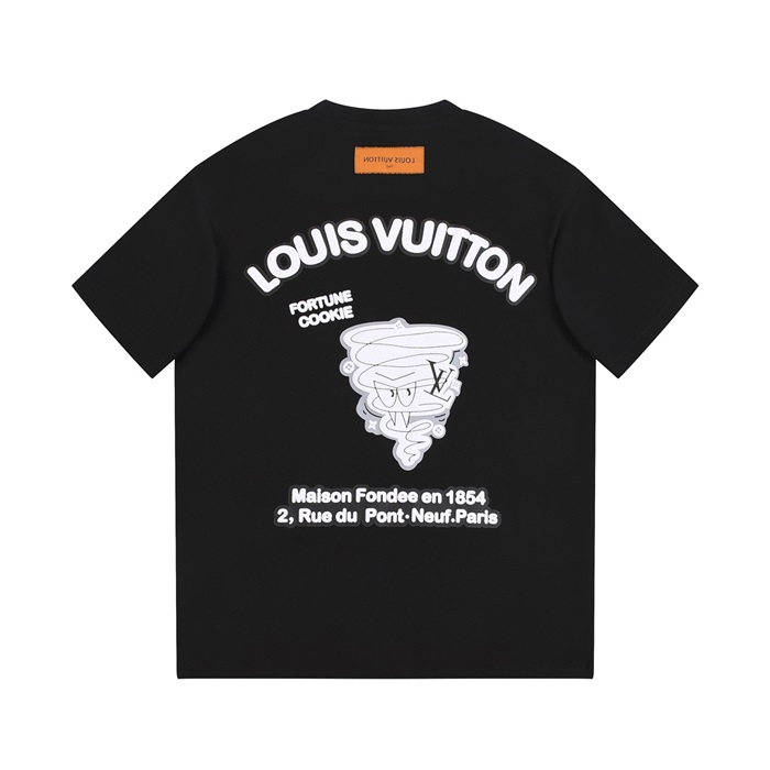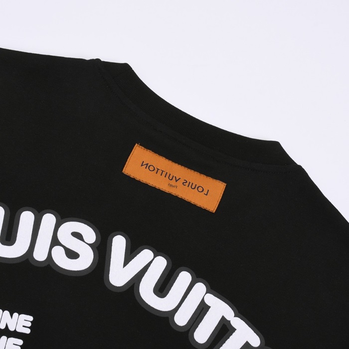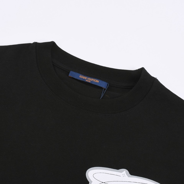 ルイヴィトンメンズブラッククルーネック半袖Tシャツv897