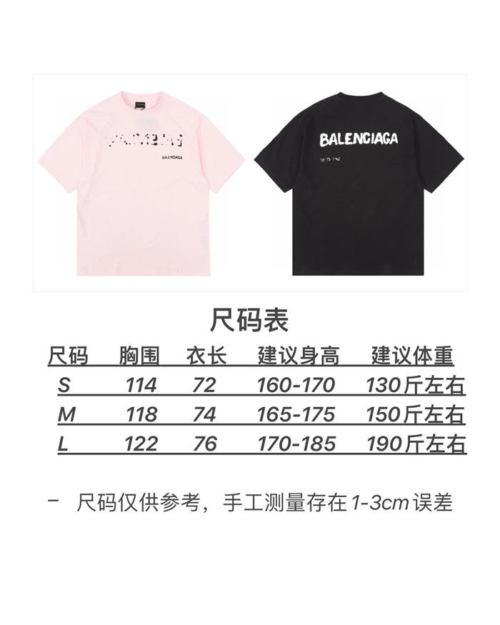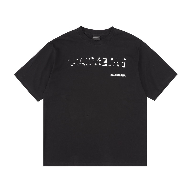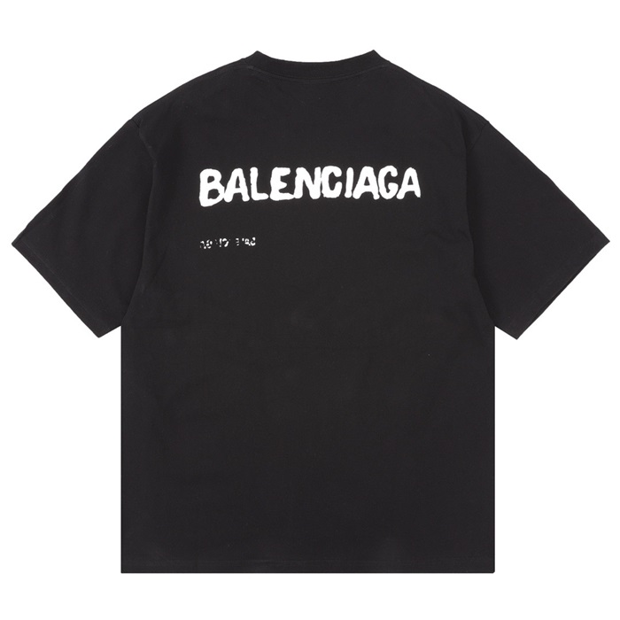 バレンシアガメンズブラッククルーネック半袖Tシャツa362