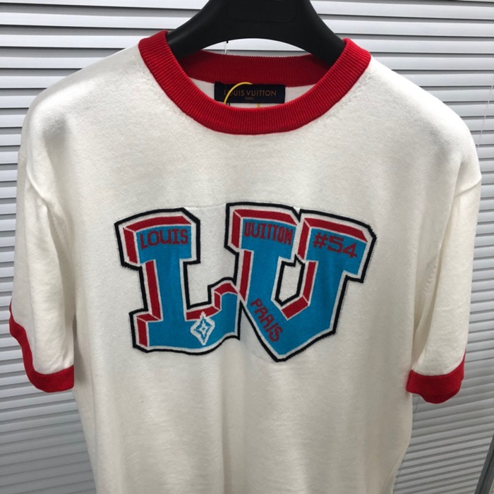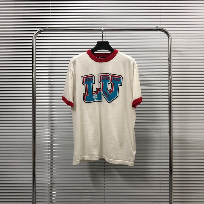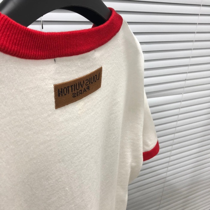 ルイヴィトンメンズホワイトクルーネック半袖Tシャツv901