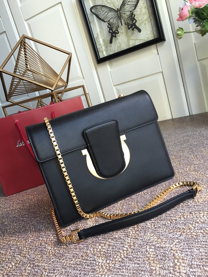 サルヴァトーレフェラガモレディースブラッククロスバッグf21