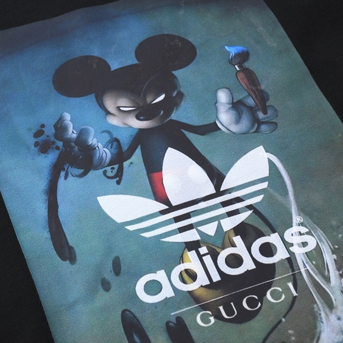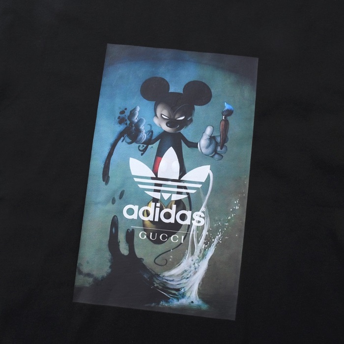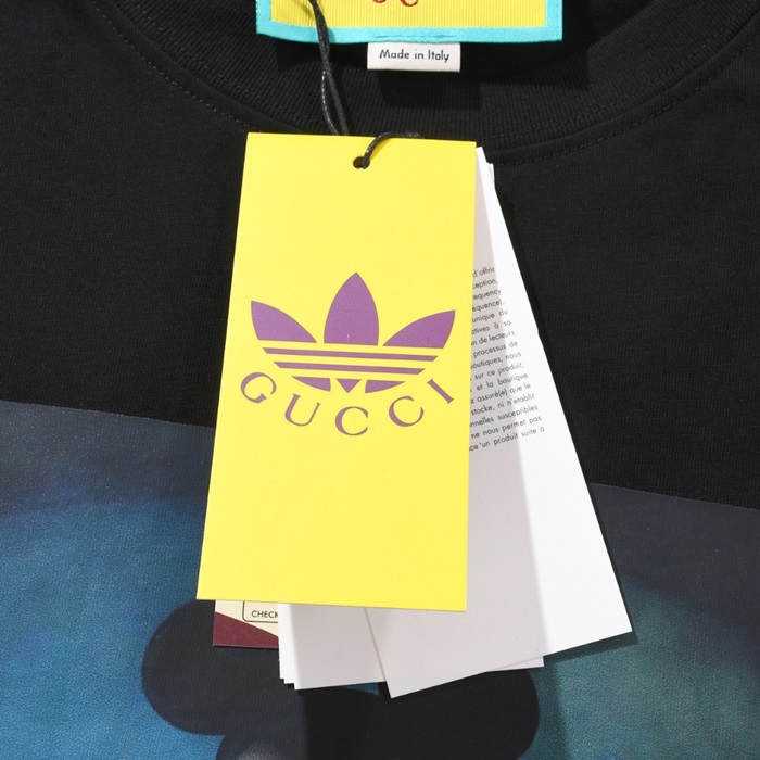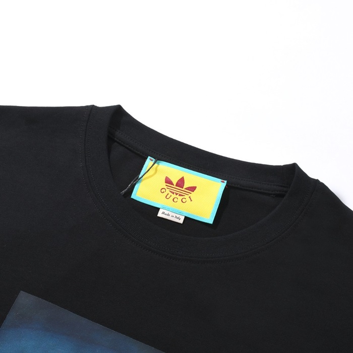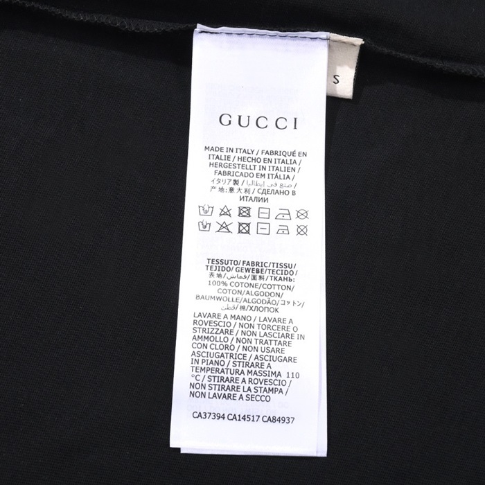 グッチユニセックスブラッククルーネック半袖Tシャツu667