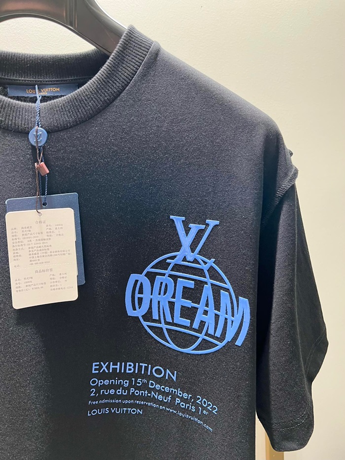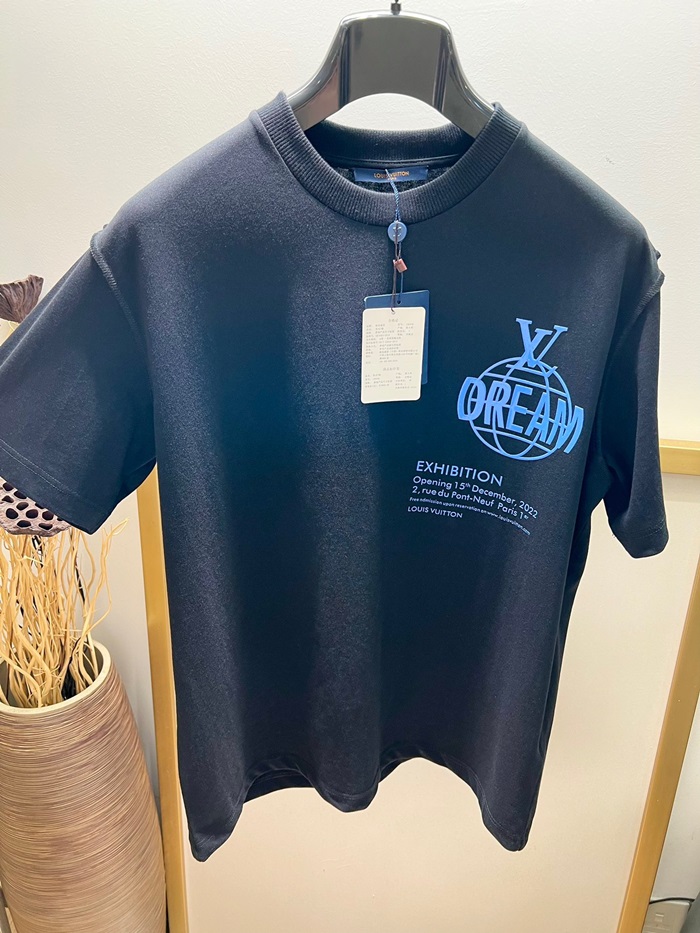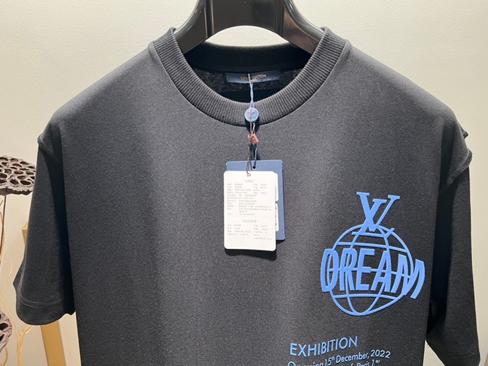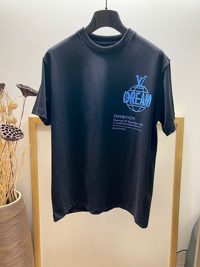 ルイヴィトンメンズブラッククルーネック半袖Tシャツv931