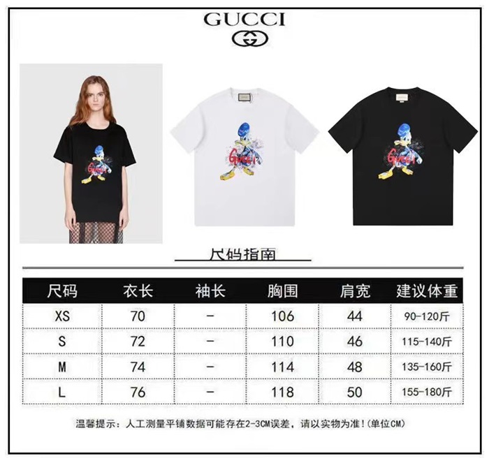 グッチユニセックスホワイトクルーネック半袖Tシャツu671