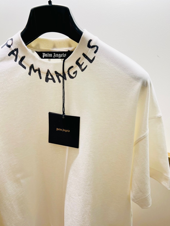 パームエンジェルスメンズアイボリークルーネック半袖Tシャツm404