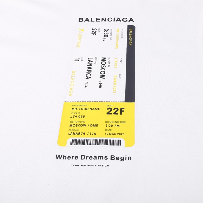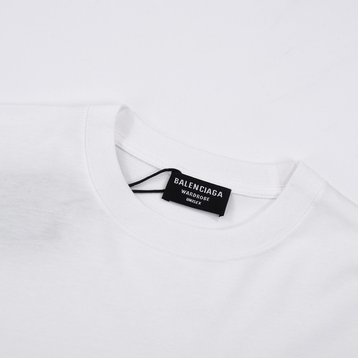 バレンシアガメンズホワイトクルーネック半袖Tシャツa373