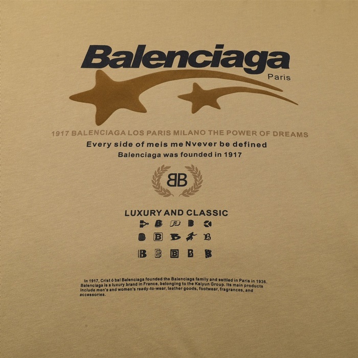 バレンシアガメンズキャメルクルーネック半袖Tシャツa376