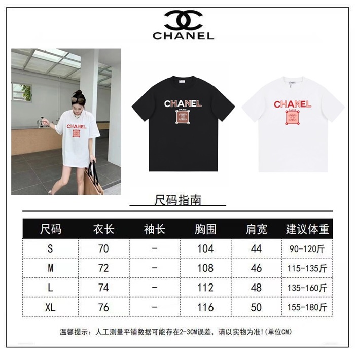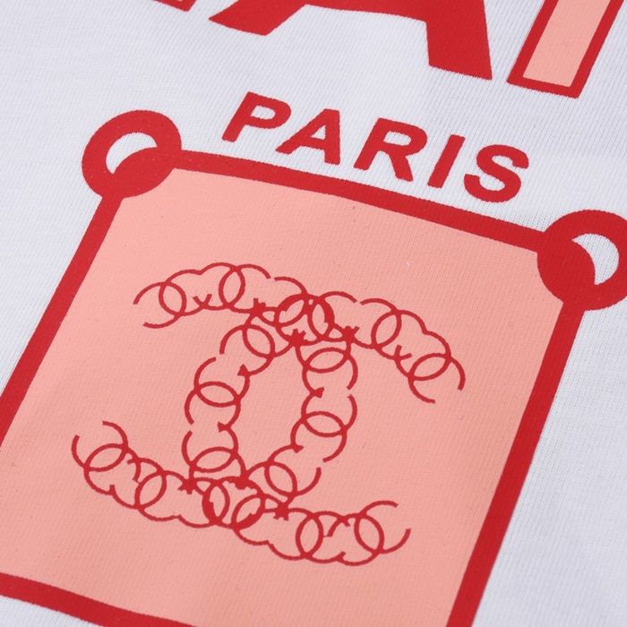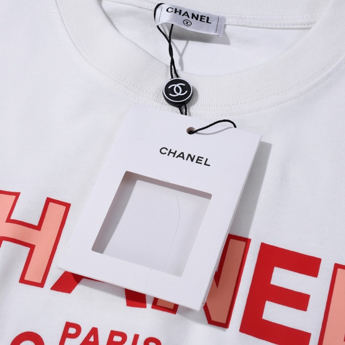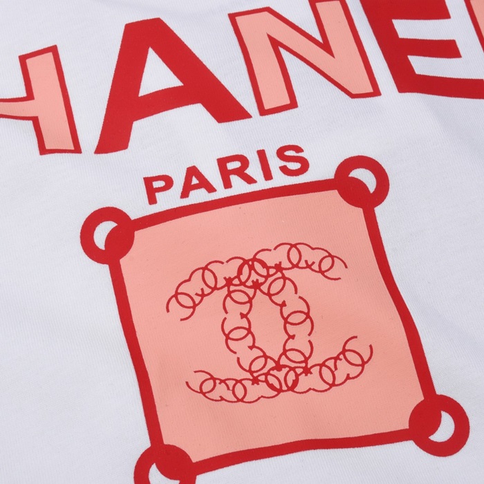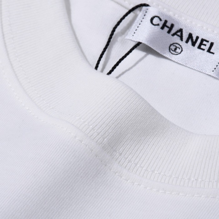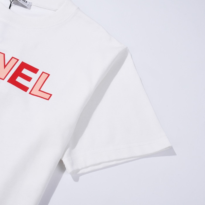 シャネルユニセックスクルーネックホワイト半袖Tシャツh106