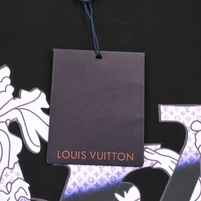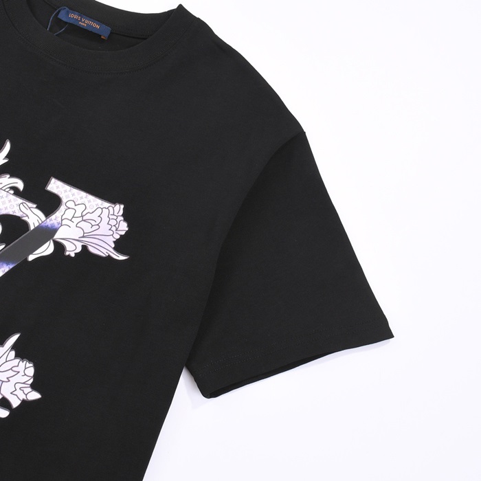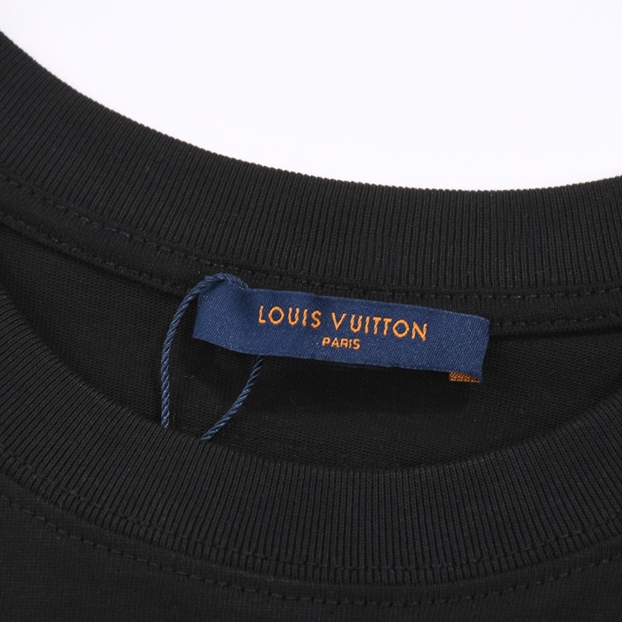 ルイヴィトンメンズブラッククルーネック半袖Tシャツv952