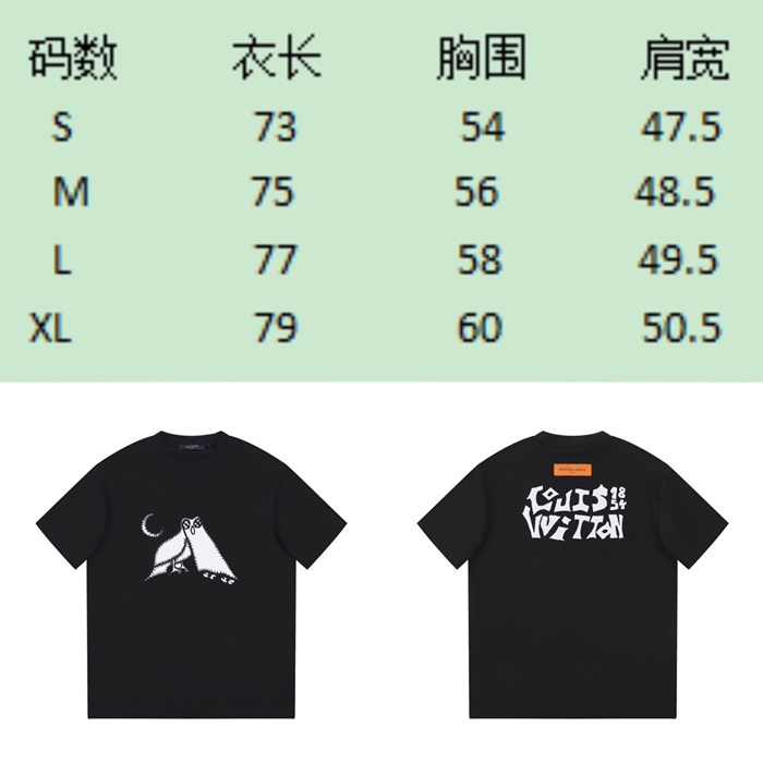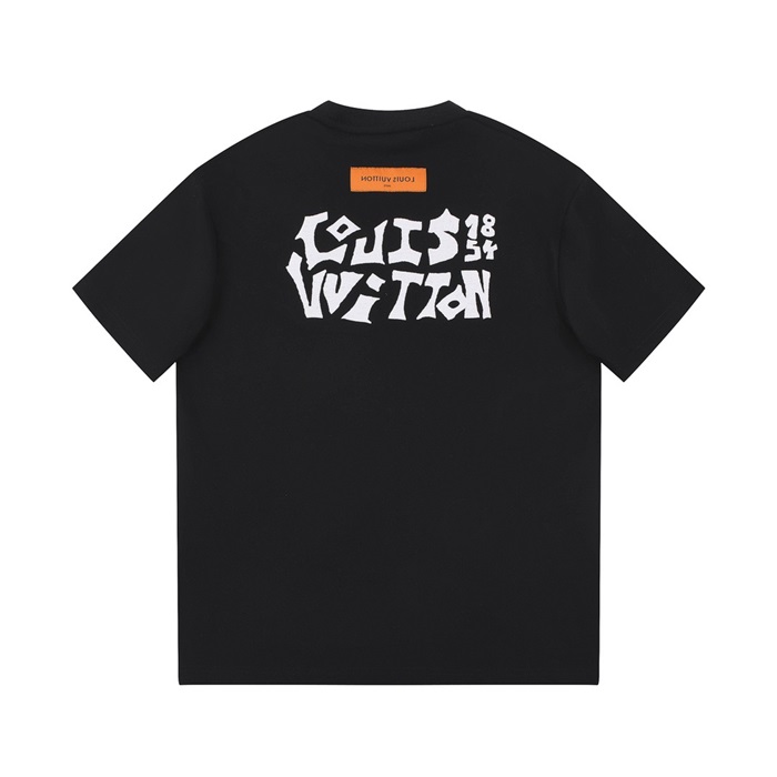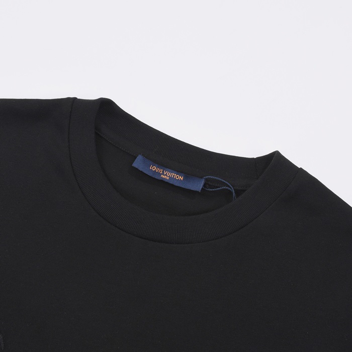 ルイヴィトンメンズブラッククルーネック半袖Tシャツv959