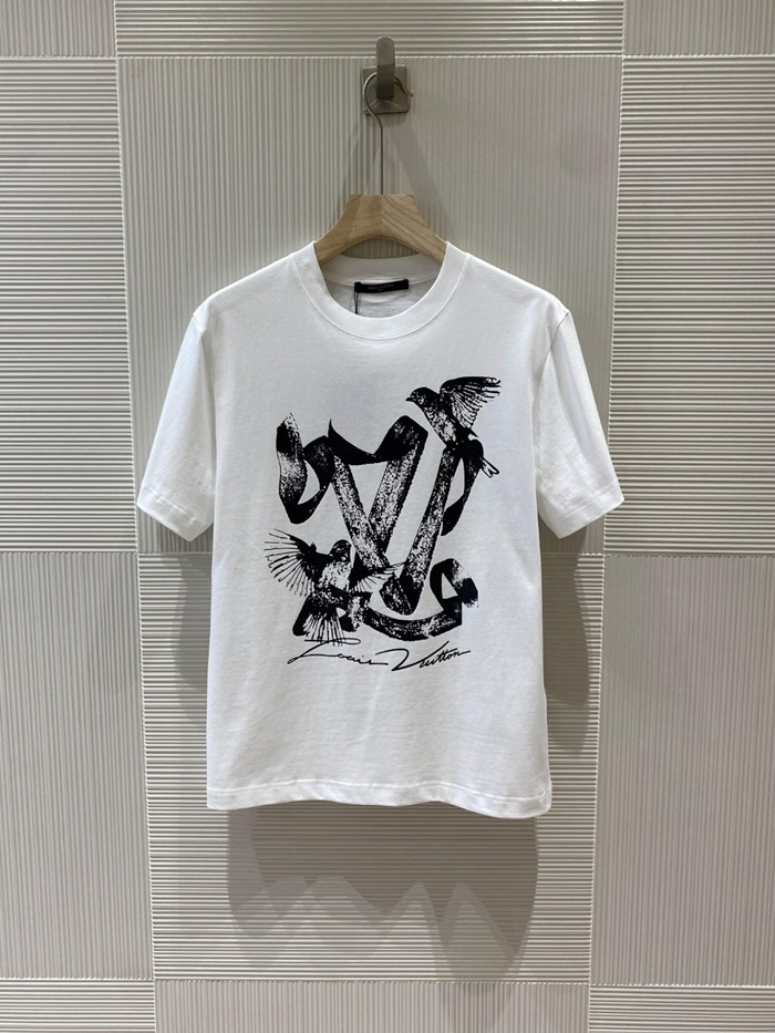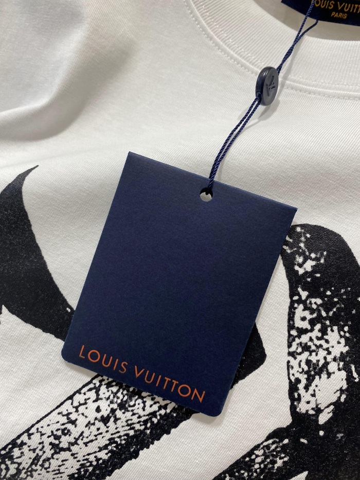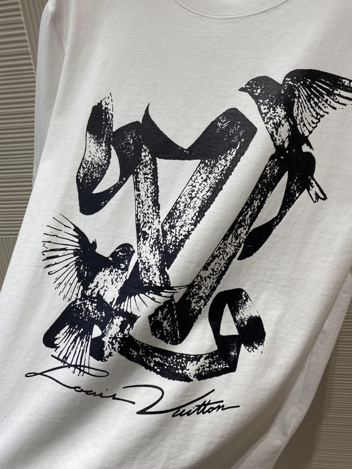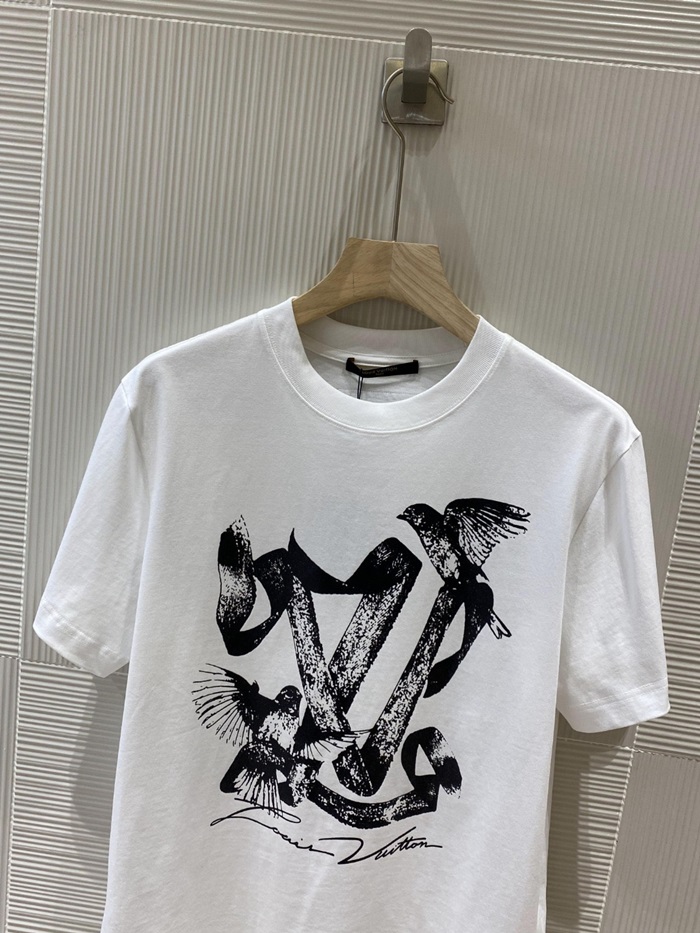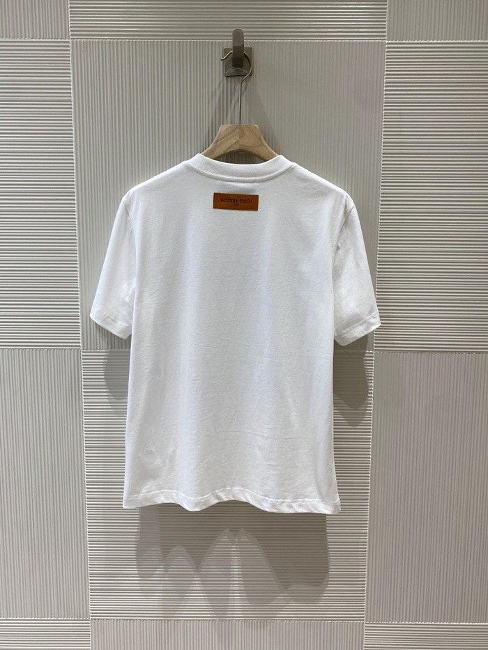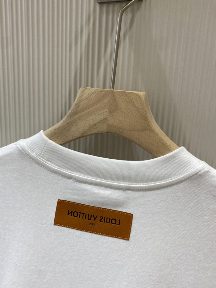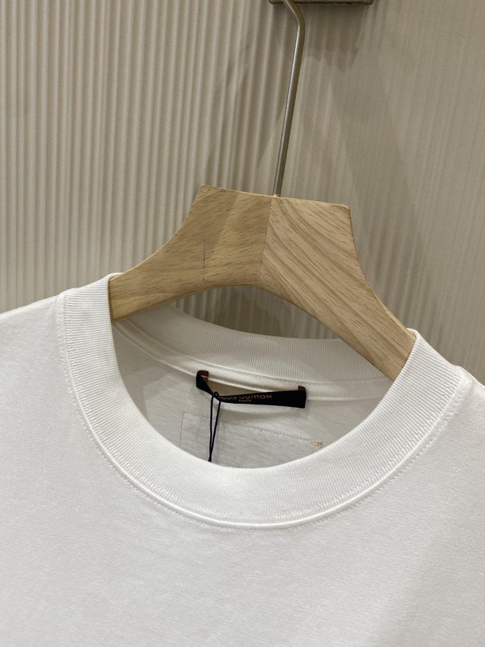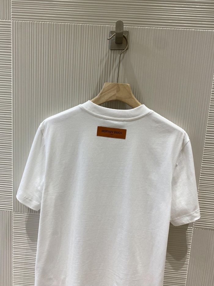 ルイヴィトンメンズホワイトクルーネック半袖Tシャツv968