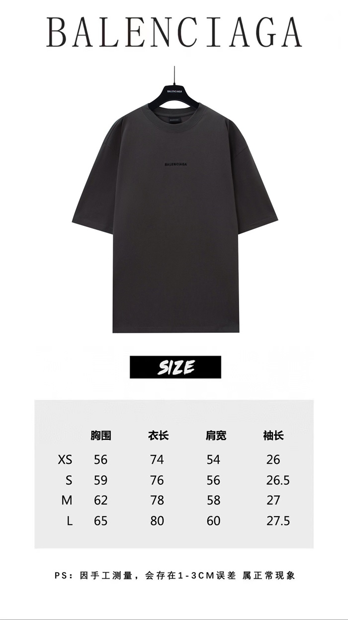 バレンシアガメンズブラッククルーネック半袖Tシャツa379