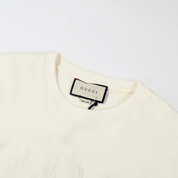 グッチユニセックスアイボリークルーネック半袖Tシャツu685