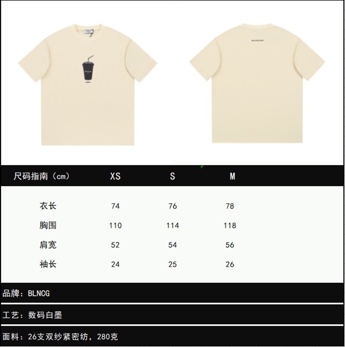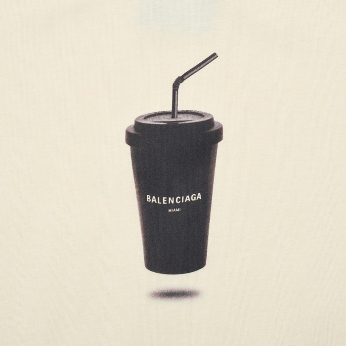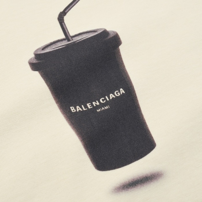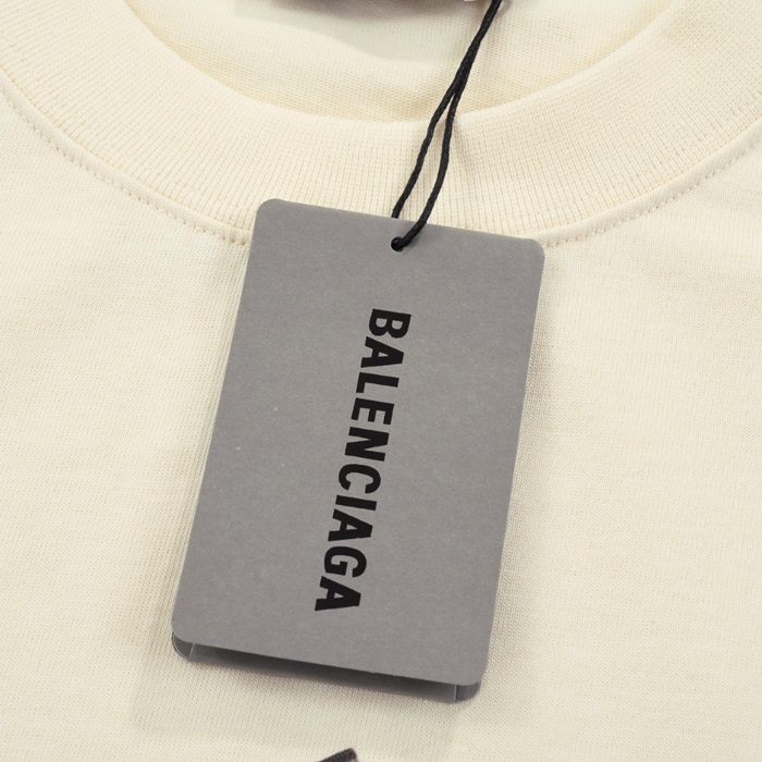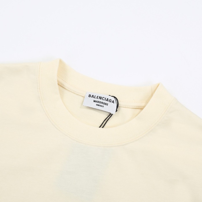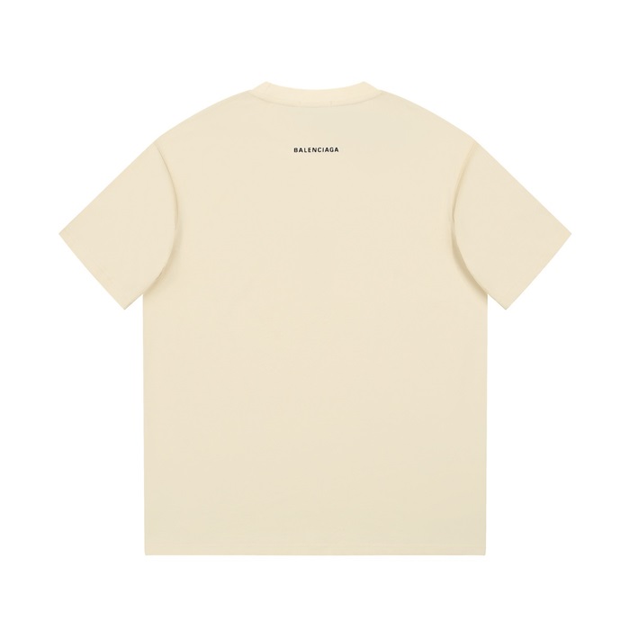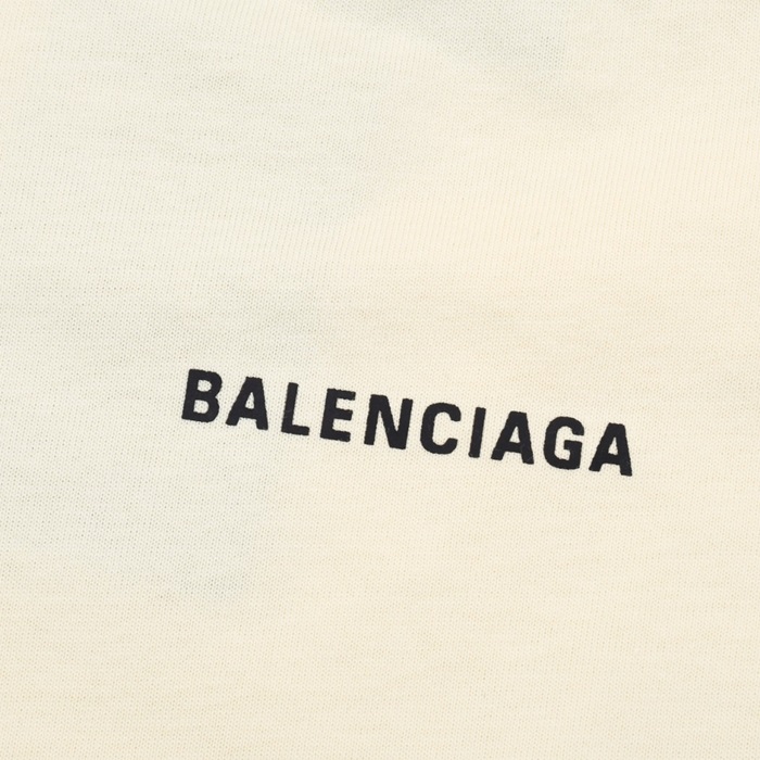 バレンシアガメンズアイボリークルーネック半袖Tシャツa405