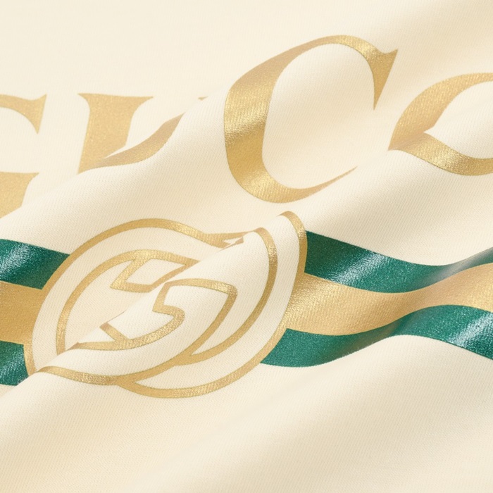 グッチユニセックスアイボリークルーネック半袖Tシャツu687