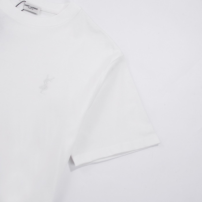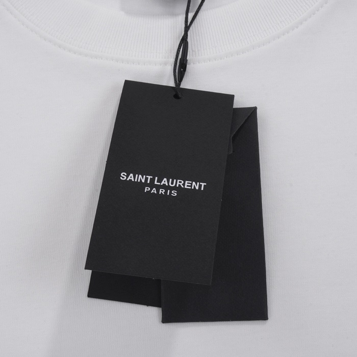 サンローランメンズホワイトクルーネック半袖Tシャツl360