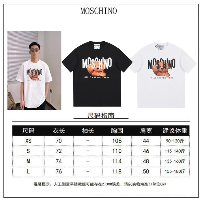 モスキーノユニセックスクルーネックブラック半袖Tシャツs231