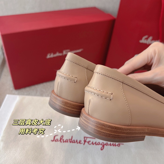 サルヴァトーレフェラガモレディースベージュローファーf58