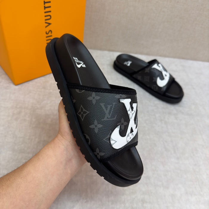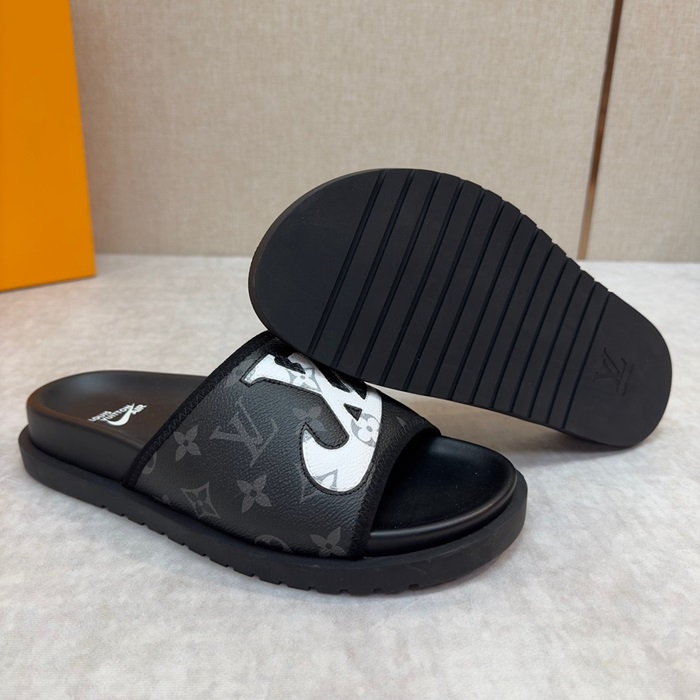 ルイヴィトンメンズブラックスリッパv1002