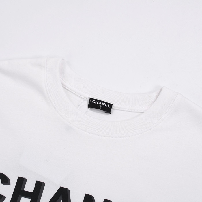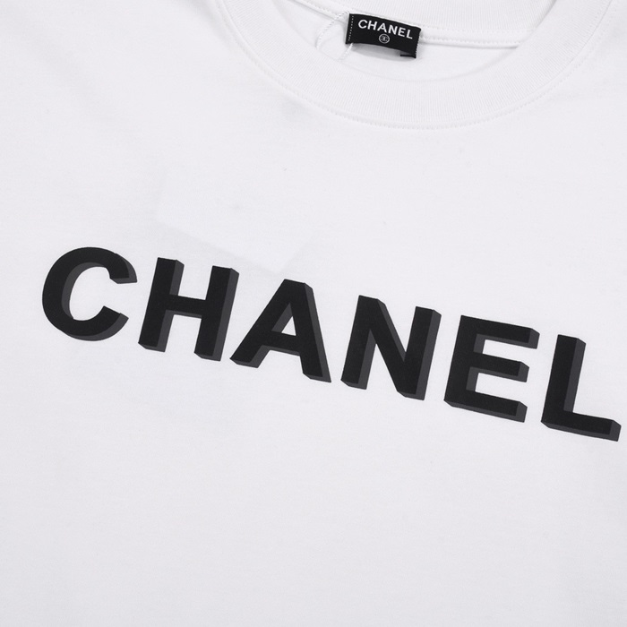 シャネルユニセックスクルーネックホワイト半袖Tシャツh416