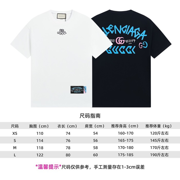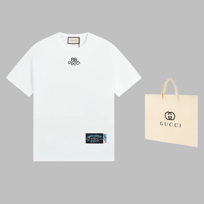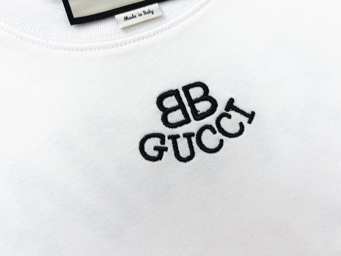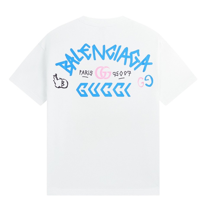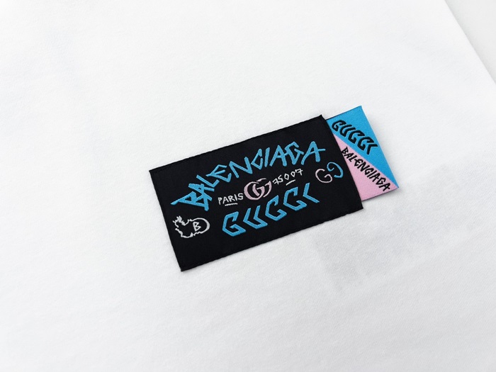 バレンシアガメンズホワイトクルーネック半袖Tシャツa409