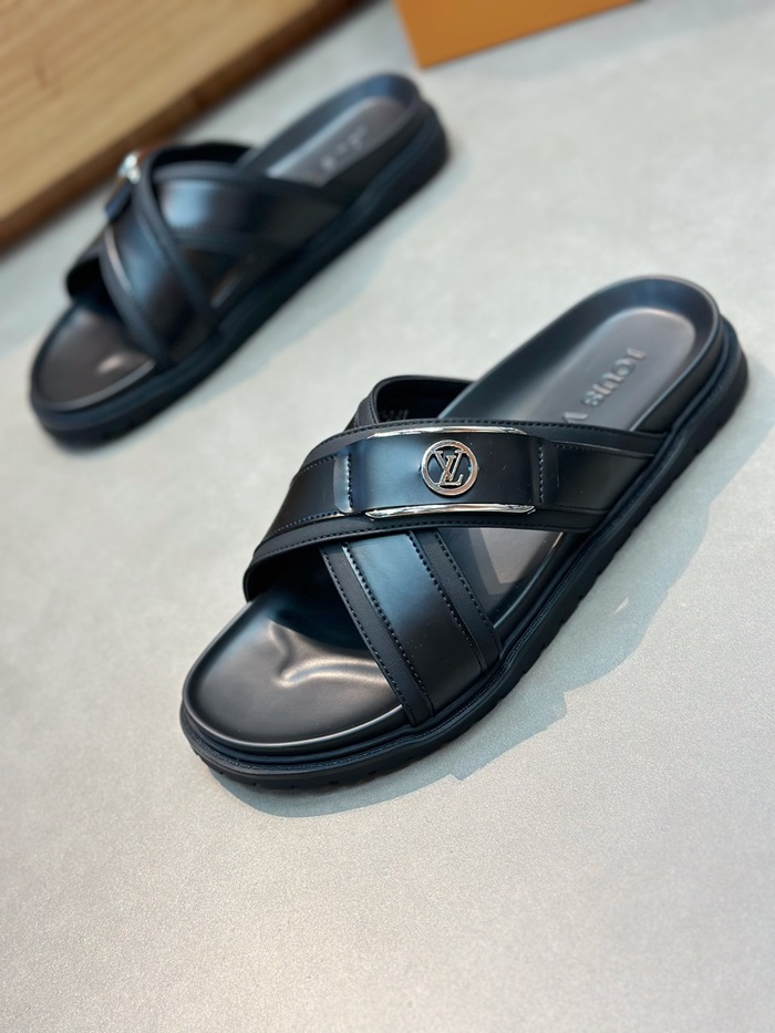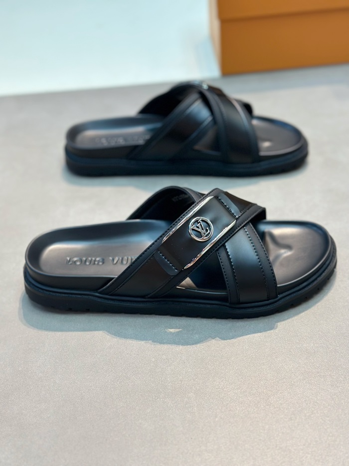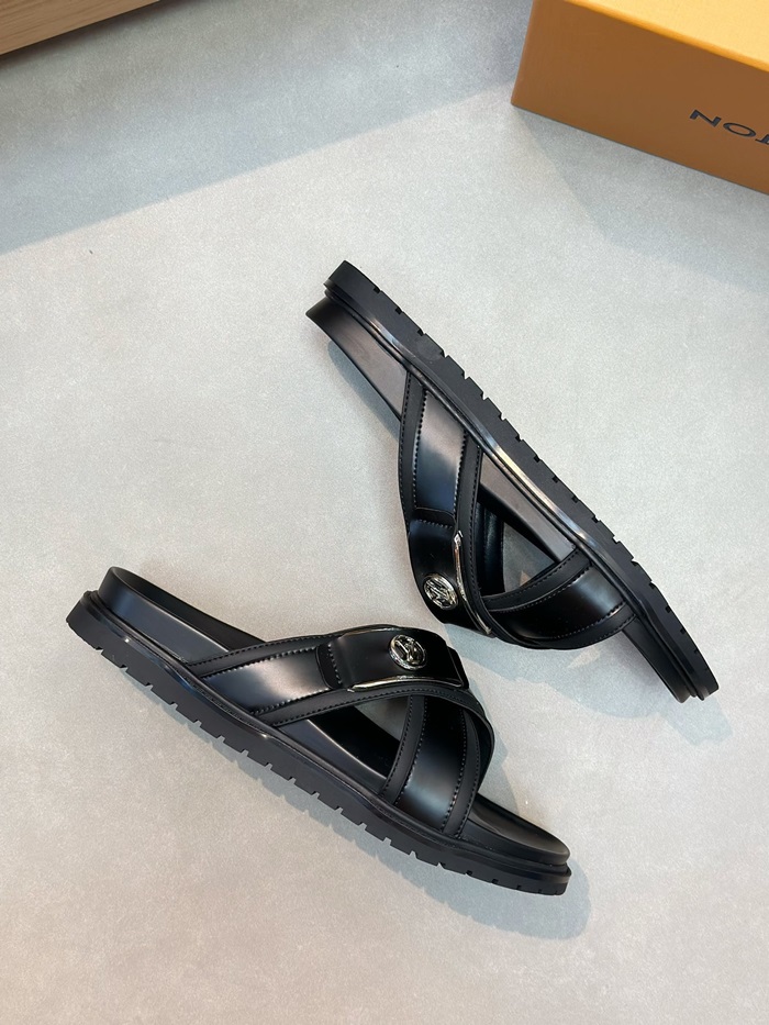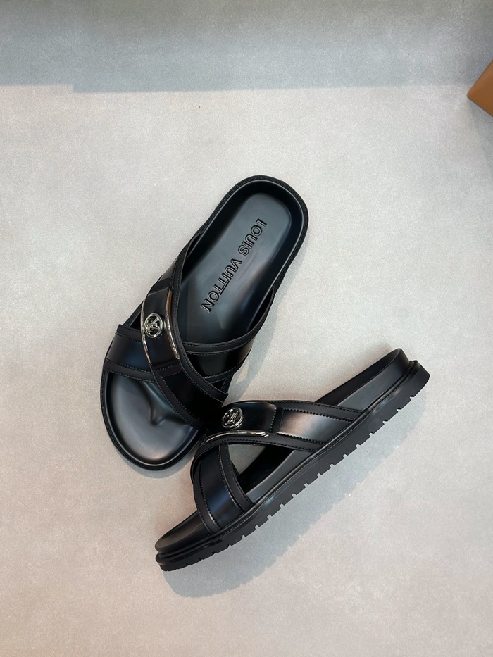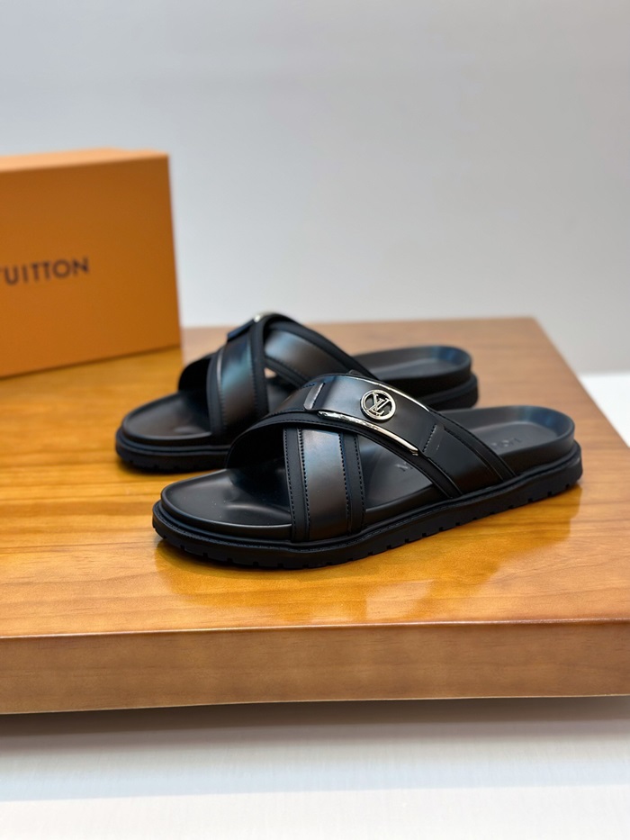 ルイヴィトンメンズブラックタップスリッパv1041