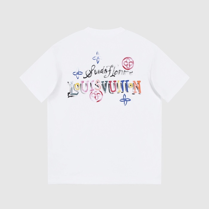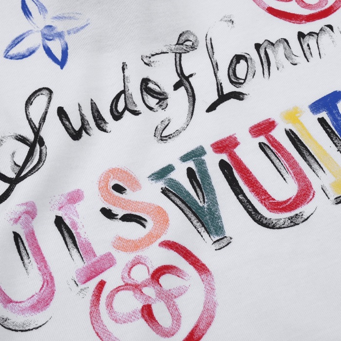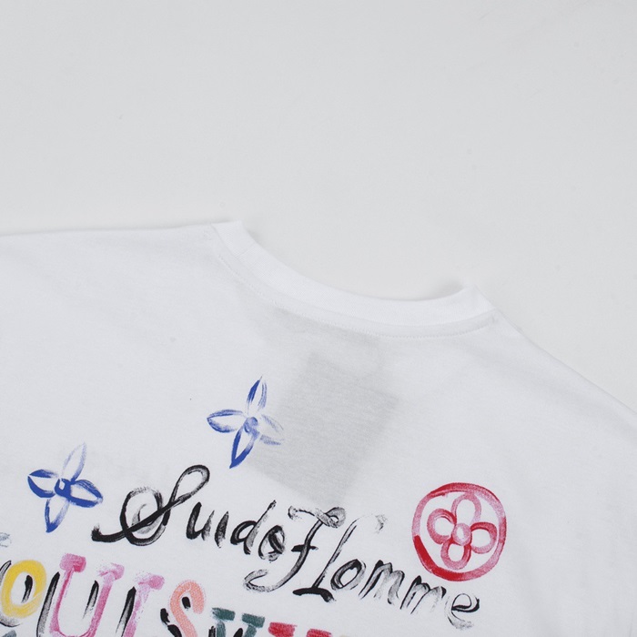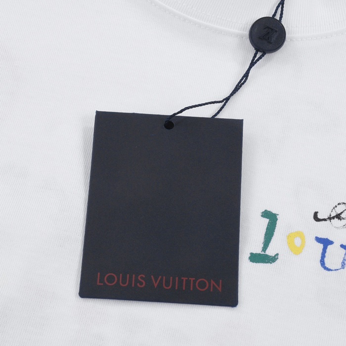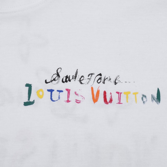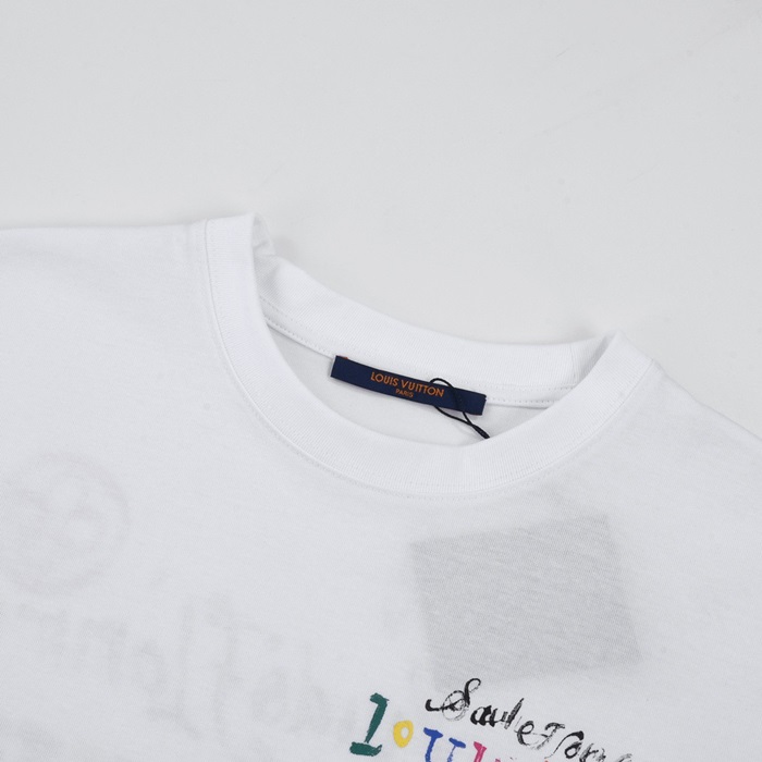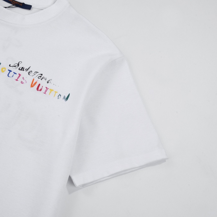 ルイヴィトンメンズホワイトクルーネック半袖Tシャツv1052