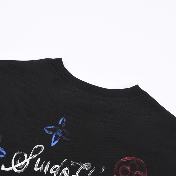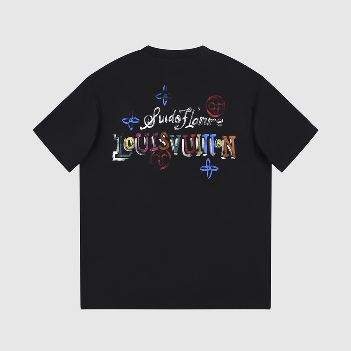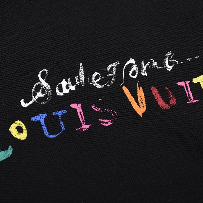 ルイヴィトンメンズブラッククルーネック半袖Tシャツv1053