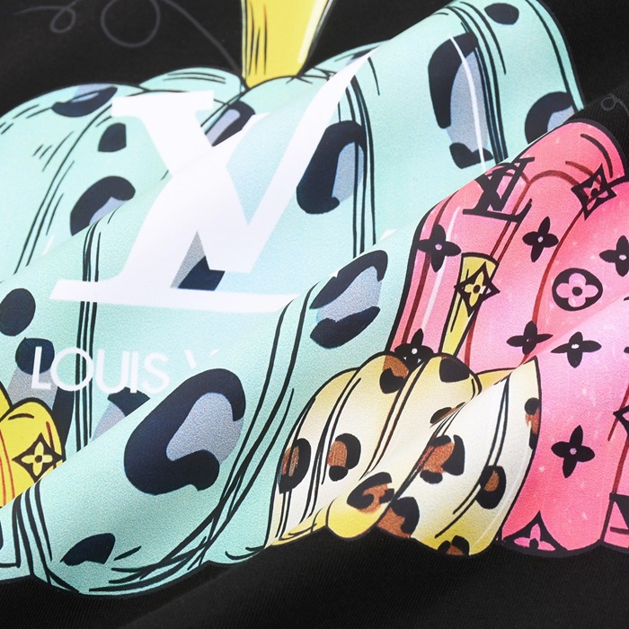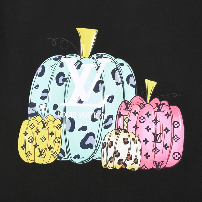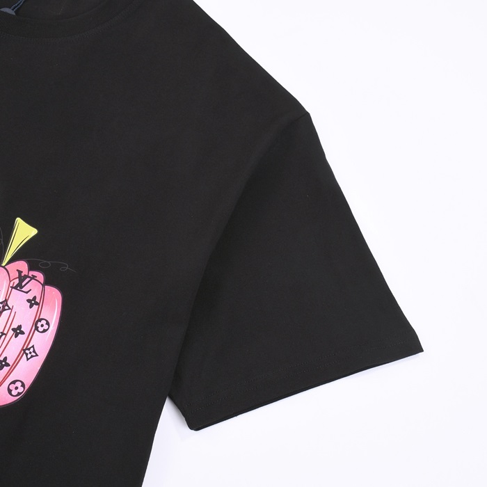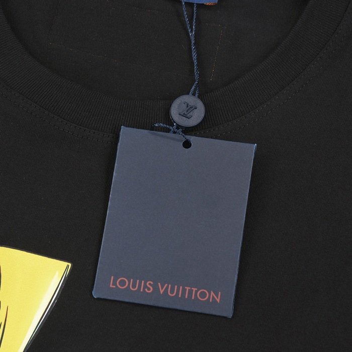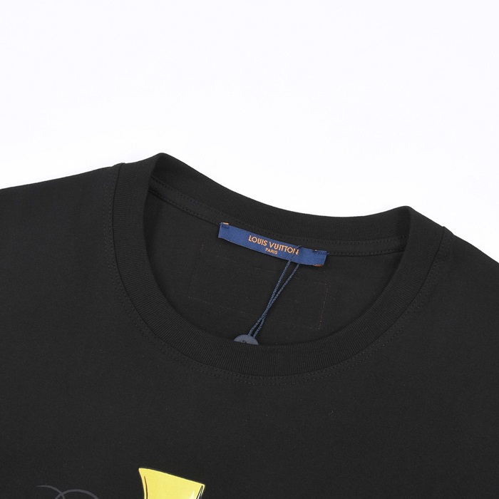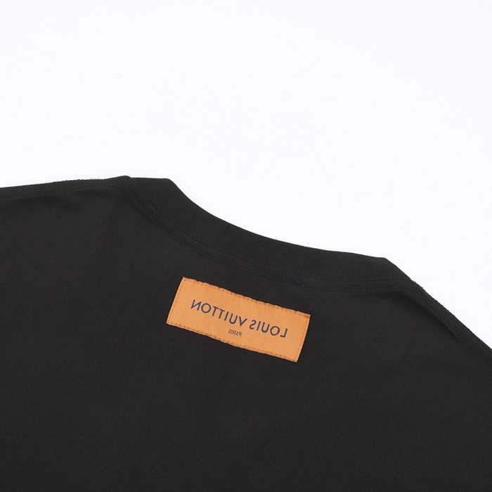 ルイヴィトンメンズブラッククルーネック半袖Tシャツv1055