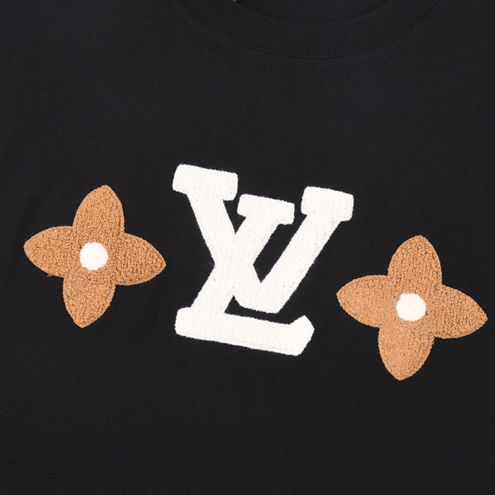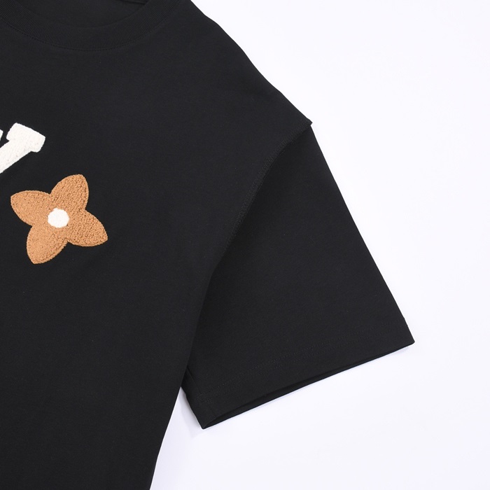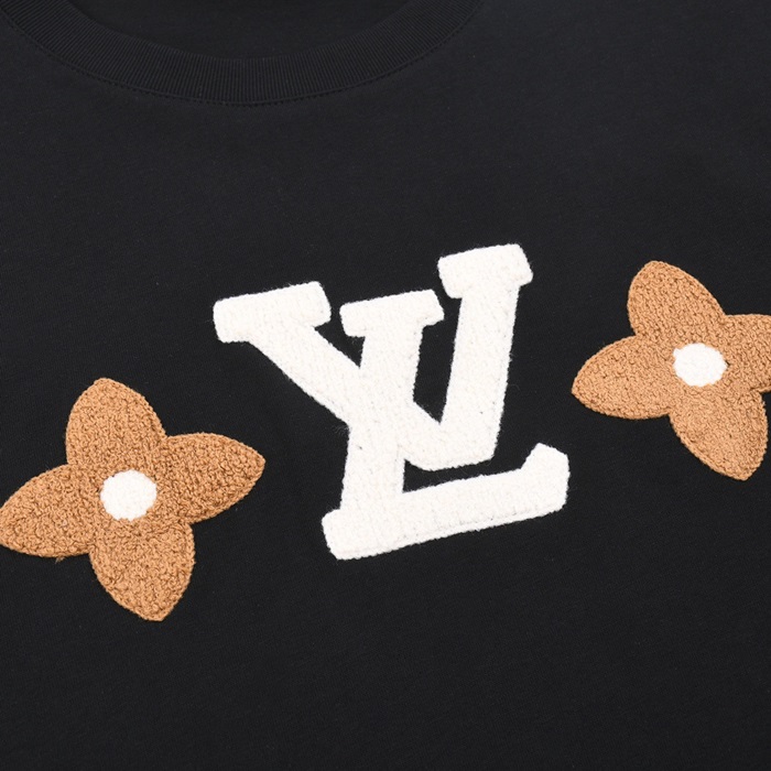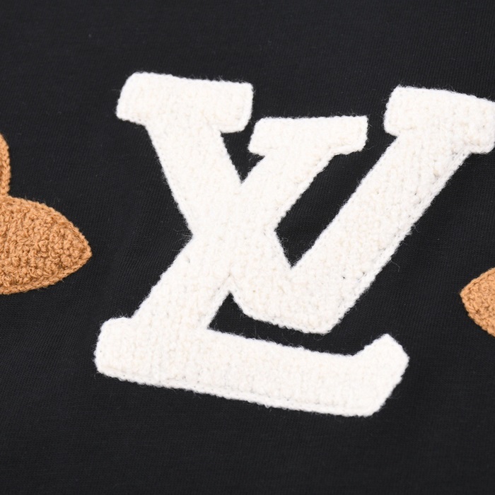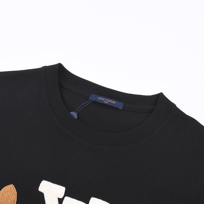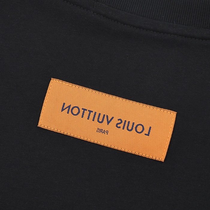 ルイヴィトンメンズブラッククルーネック半袖Tシャツv1056