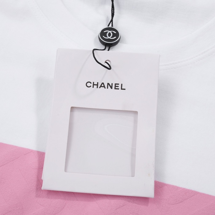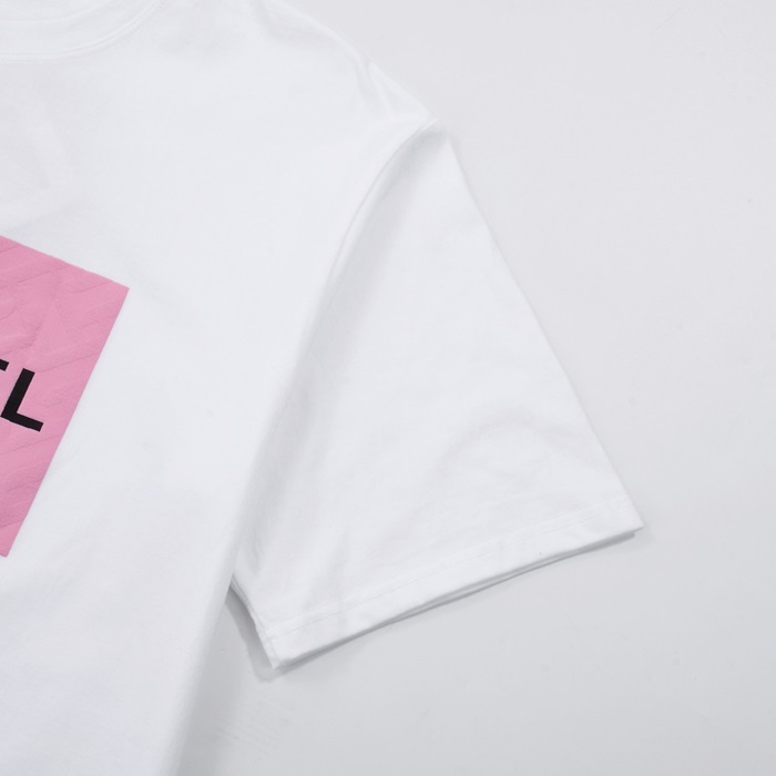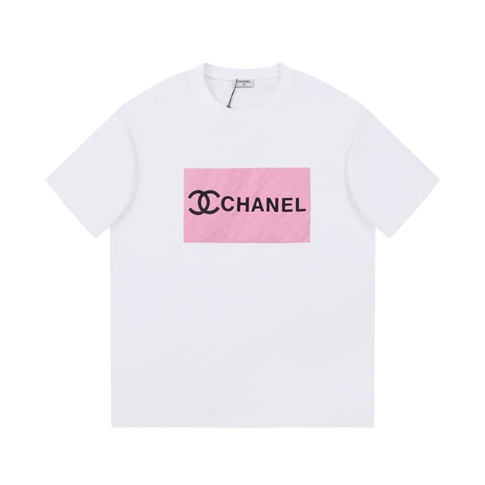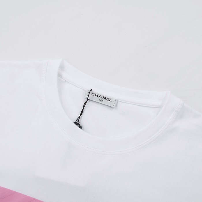 シャネルユニセックスクルーネックホワイト半袖Tシャツh418