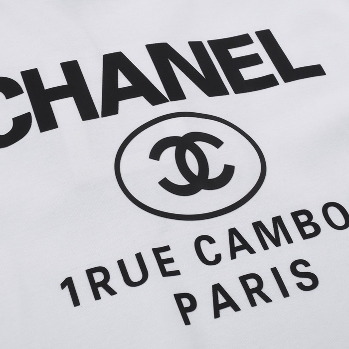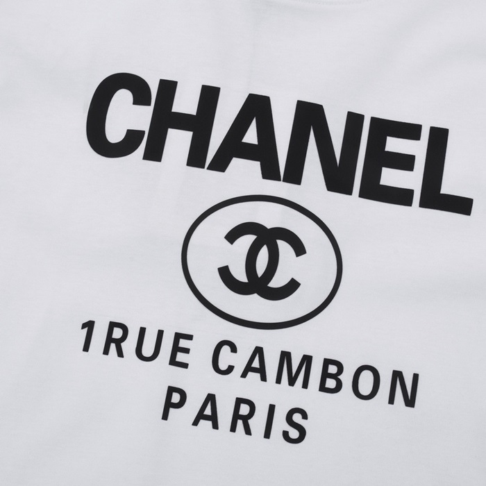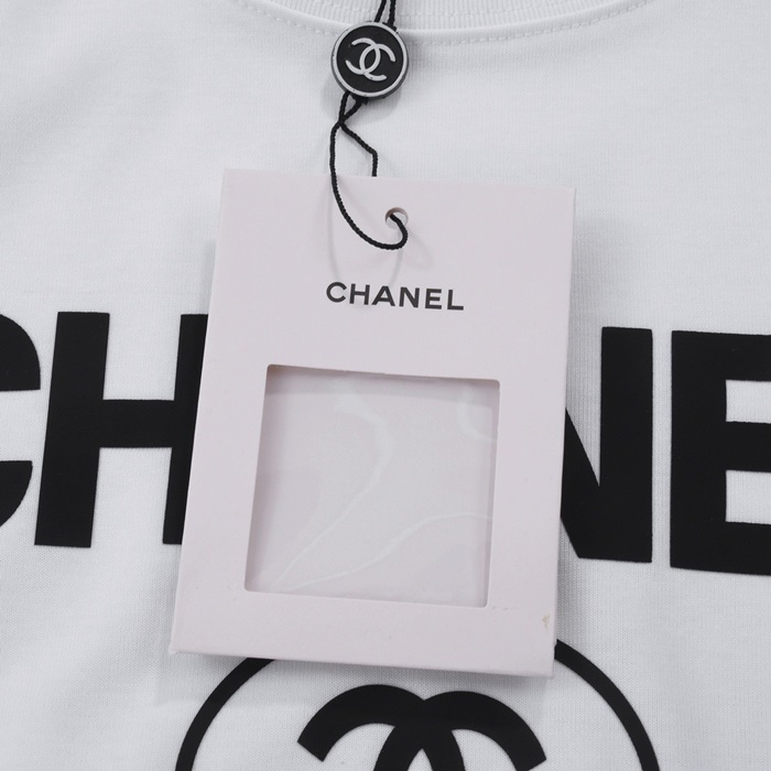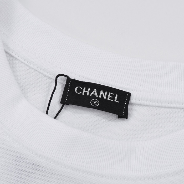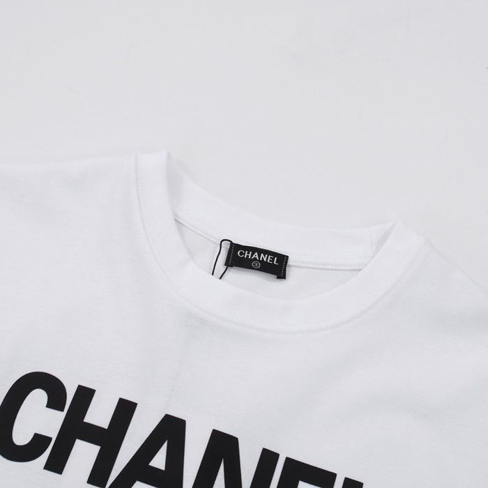 シャネルユニセックスクルーネックホワイト半袖Tシャツh422