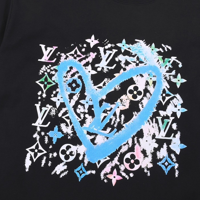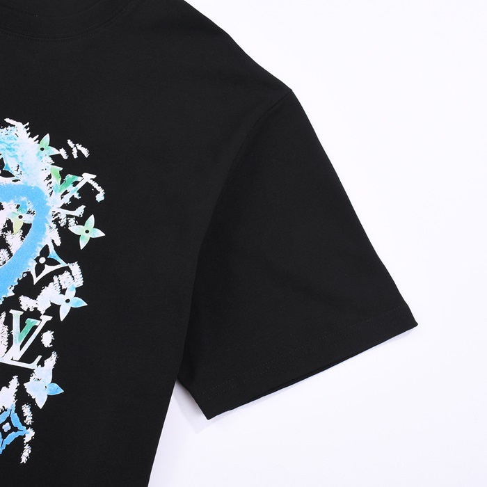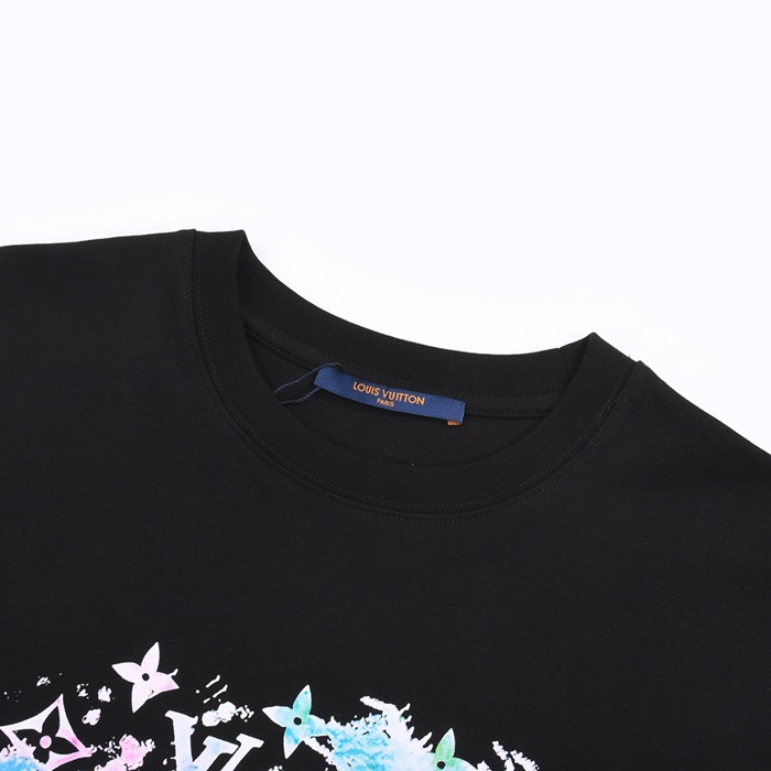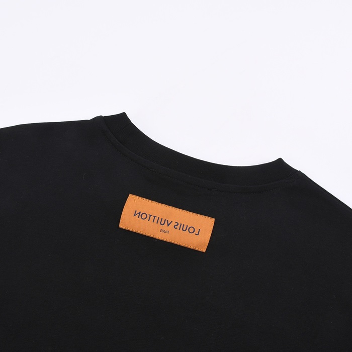 ルイヴィトンメンズブラッククルーネック半袖Tシャツv1063