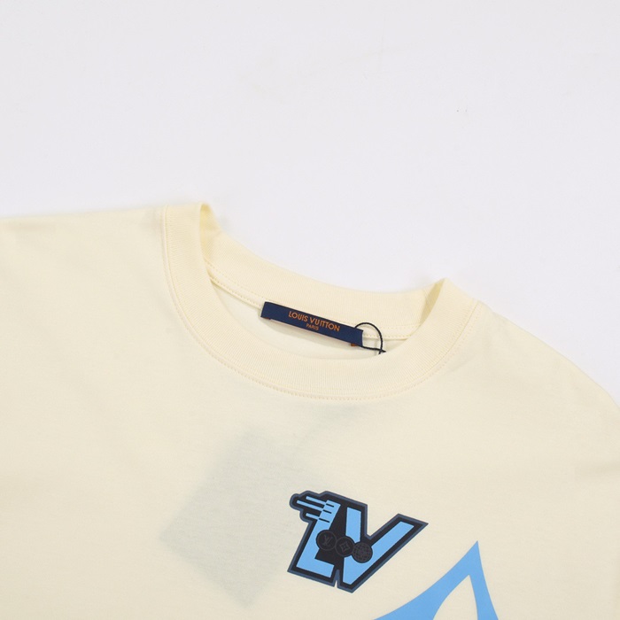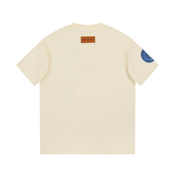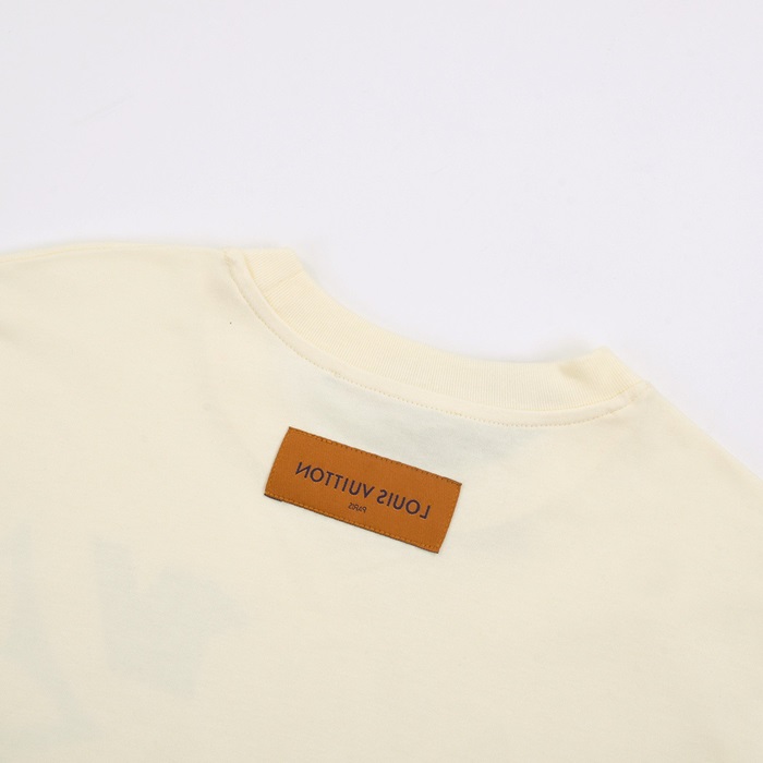 ルイヴィトンメンズアイボリークルーネック半袖Tシャツv1065