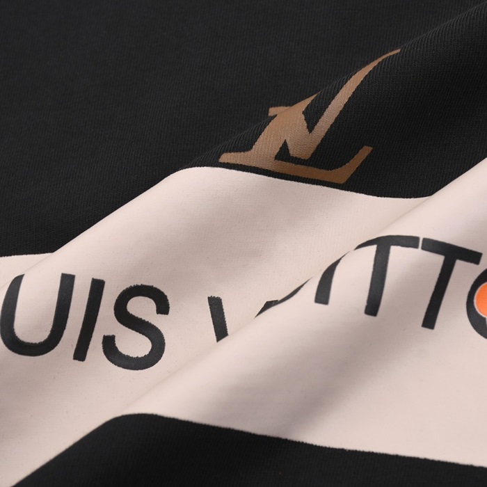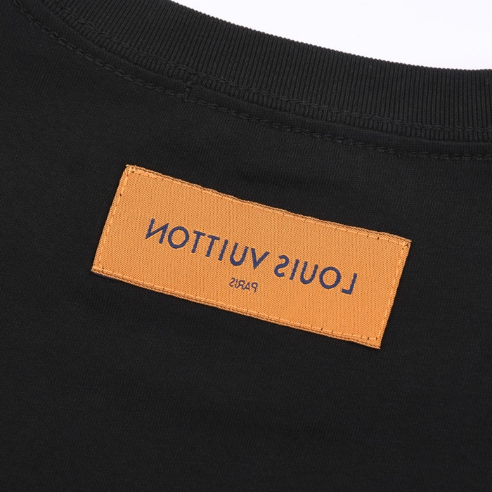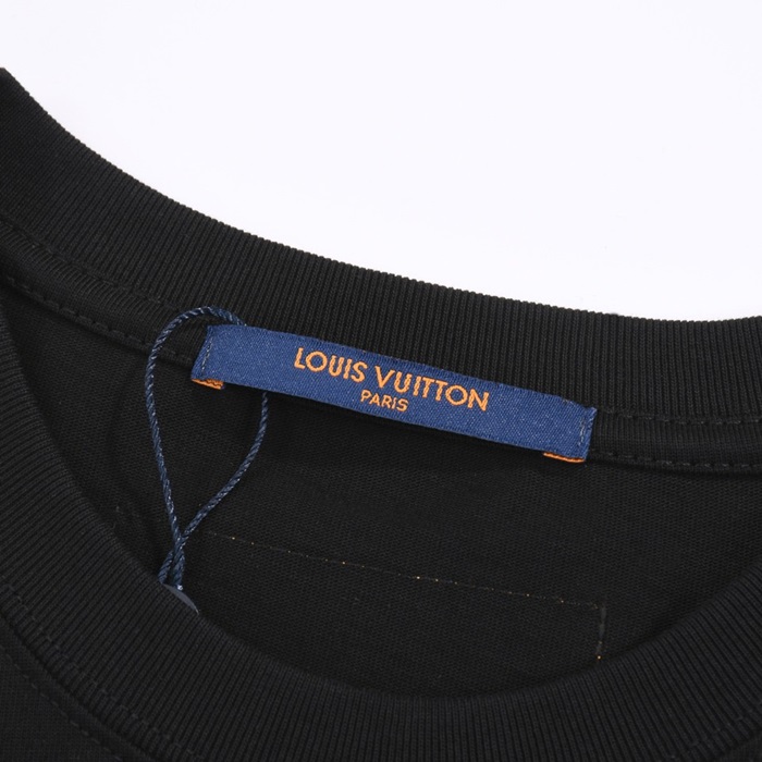 ルイヴィトンメンズブラッククルーネック半袖Tシャツv1068