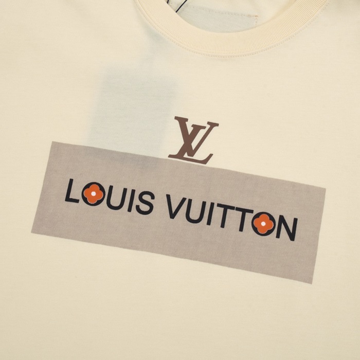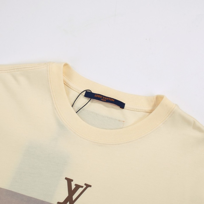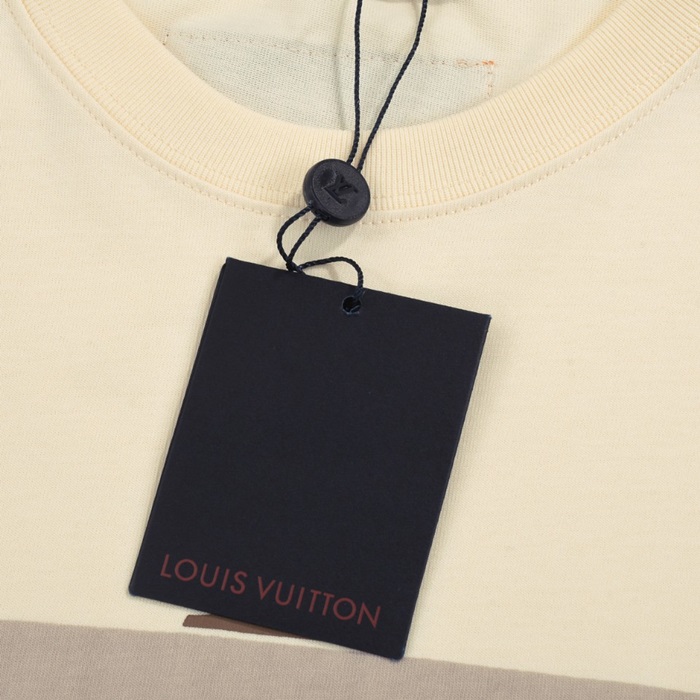 ルイヴィトンメンズアイボリークルーネック半袖Tシャツv1069