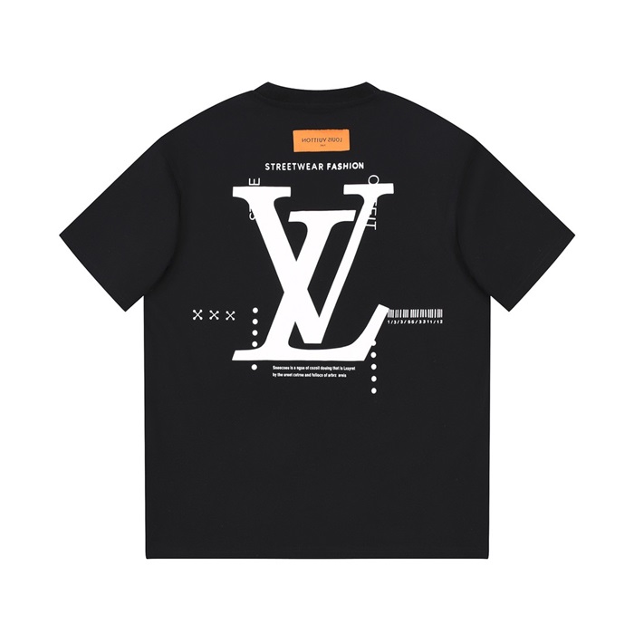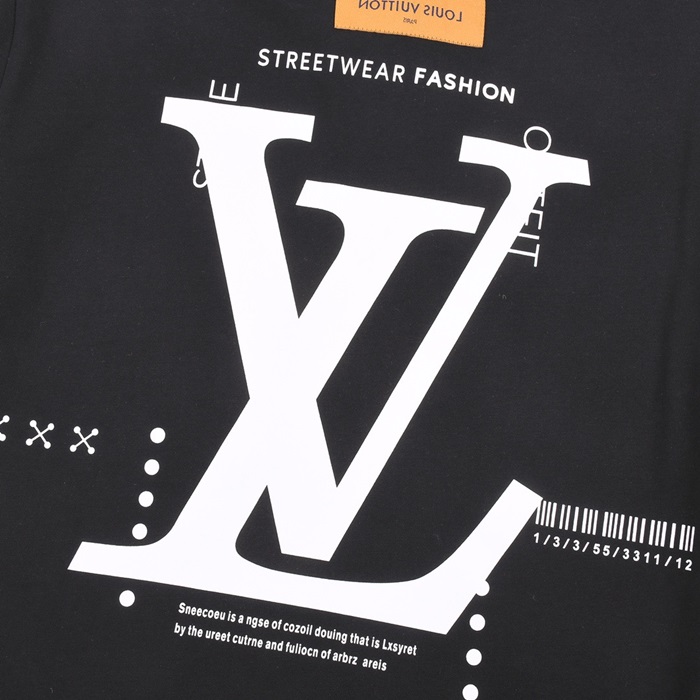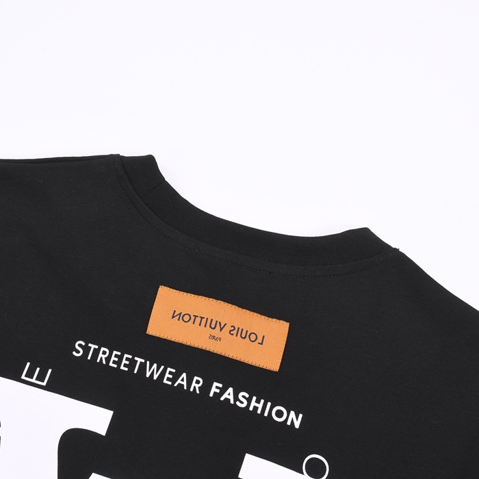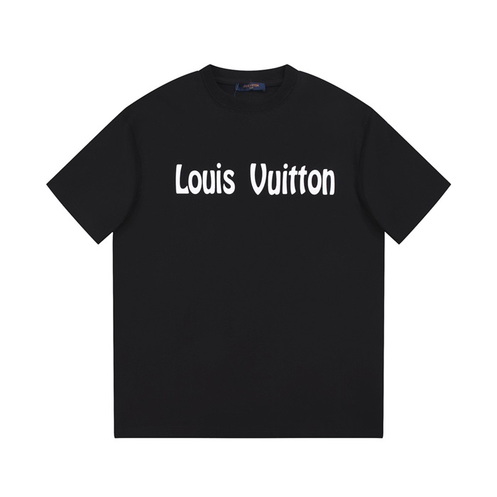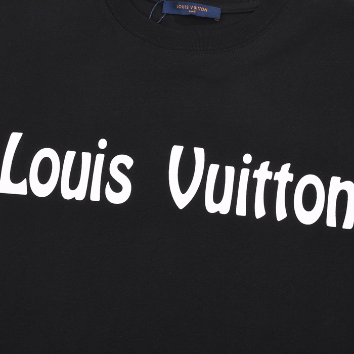 ルイヴィトンメンズブラッククルーネック半袖Tシャツv1070