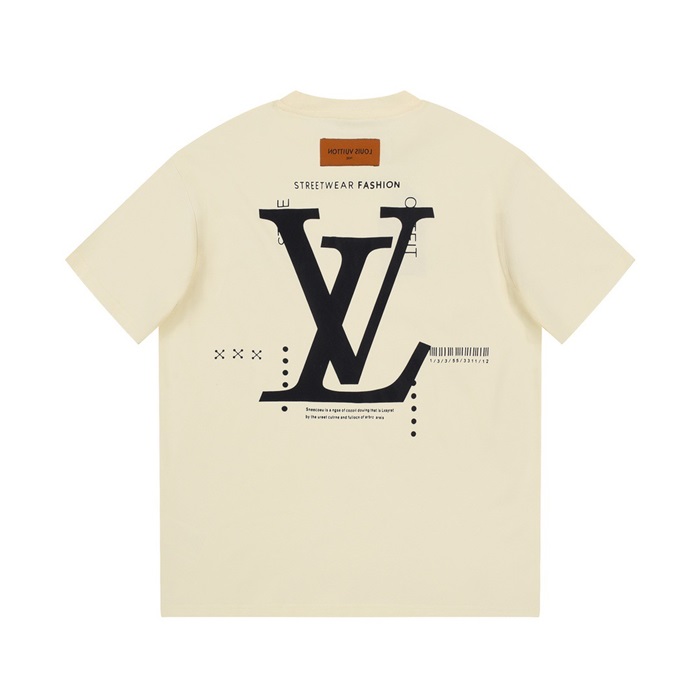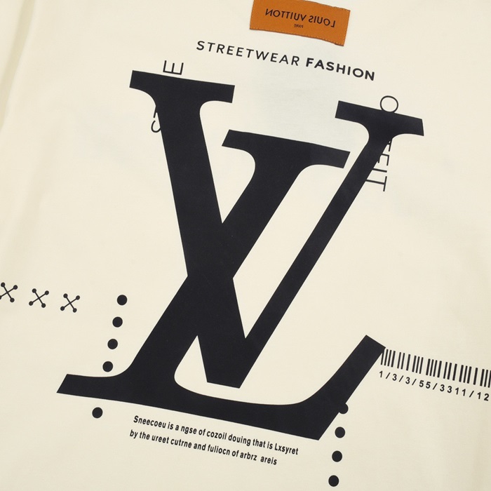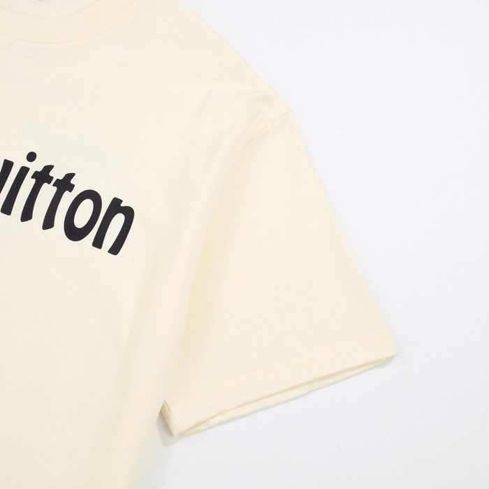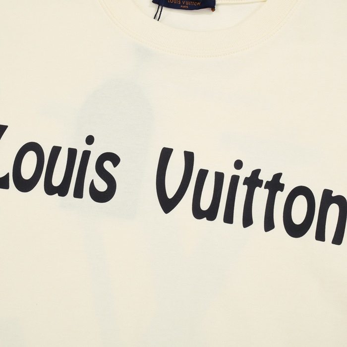 ルイヴィトンメンズアイボリークルーネック半袖Tシャツv1071