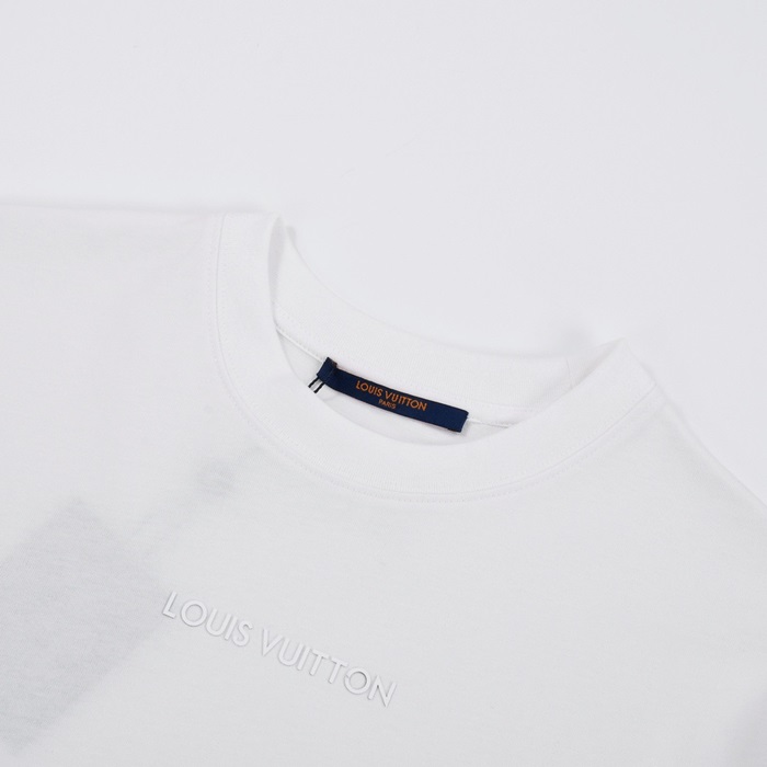 ルイヴィトンメンズホワイトクルーネック半袖Tシャツv1074
