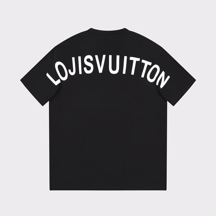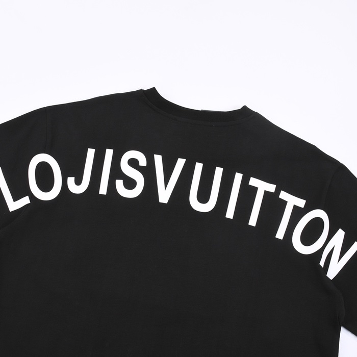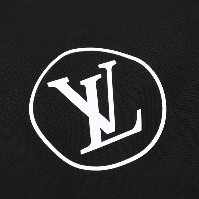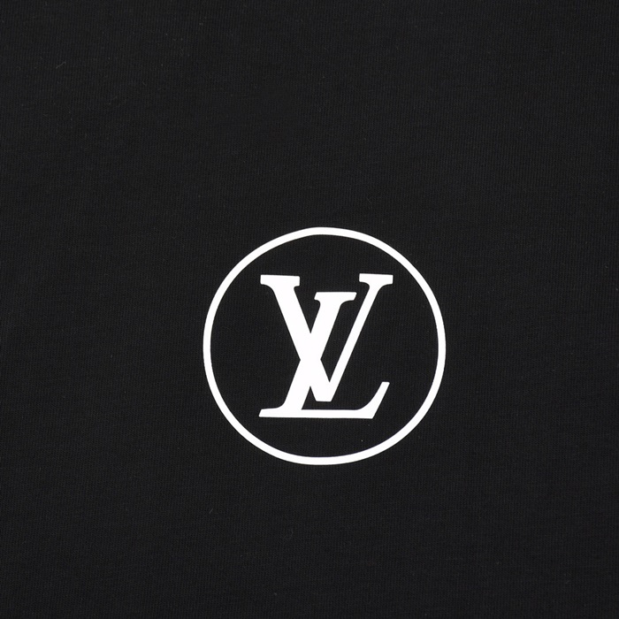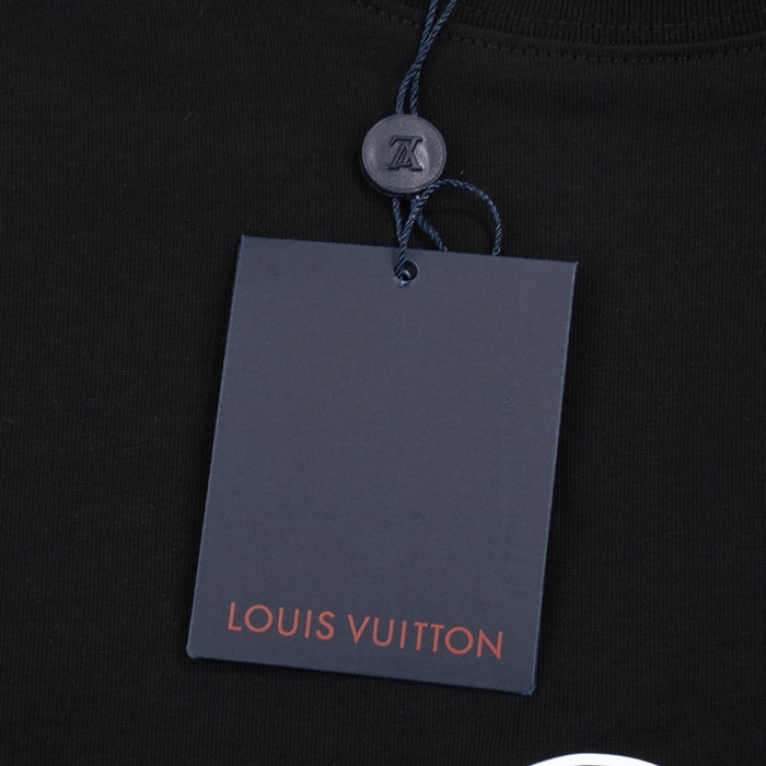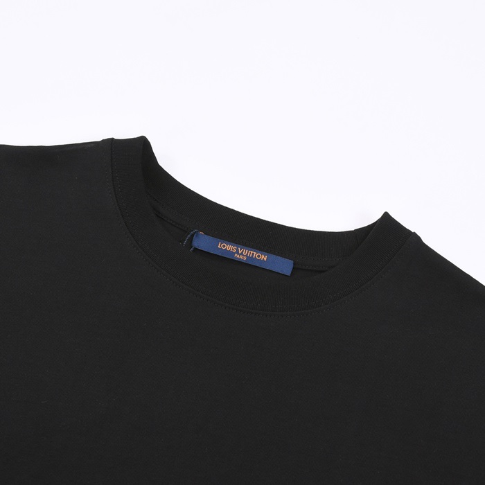 ルイヴィトンメンズブラッククルーネック半袖Tシャツv1087