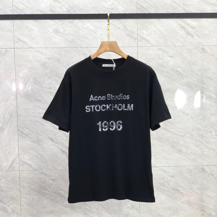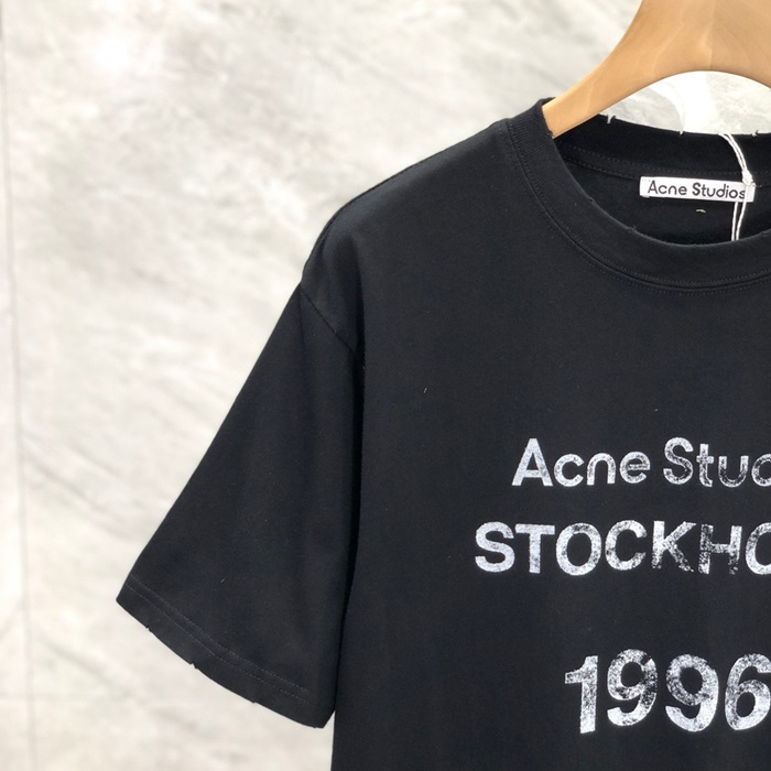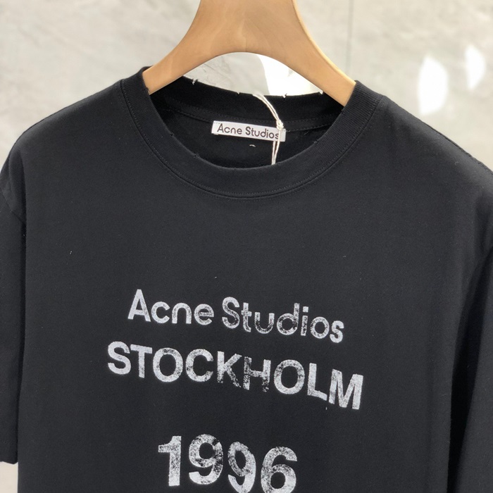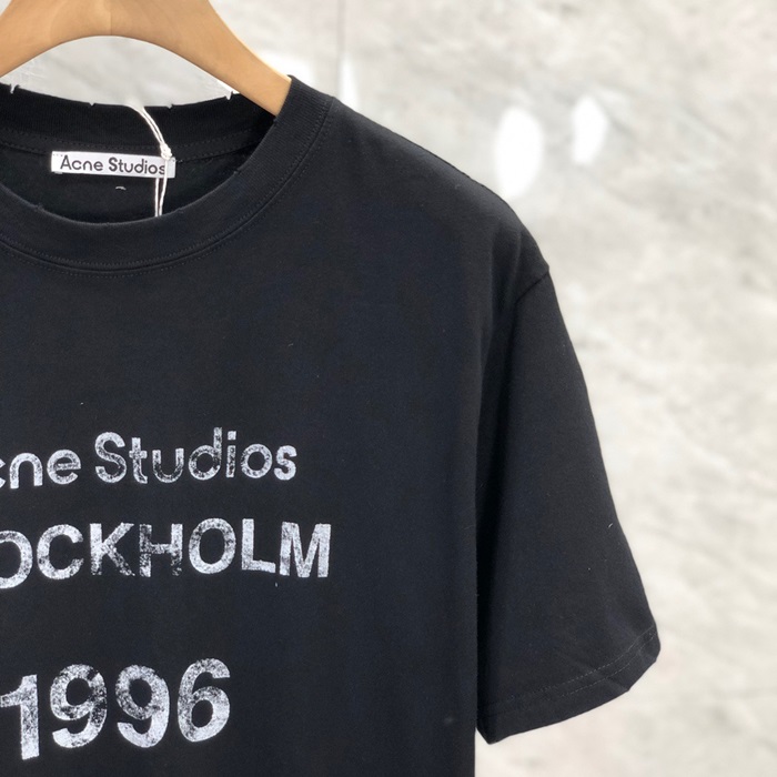アクネストゥディオズユニセックスブラッククルーネック半袖Tシャツe212