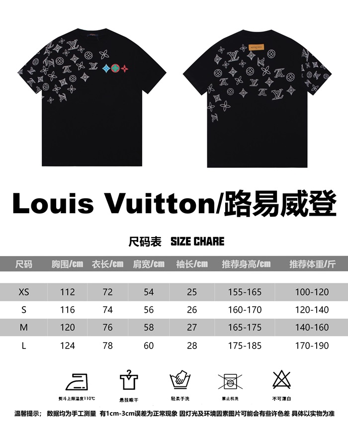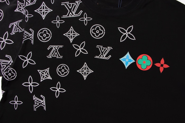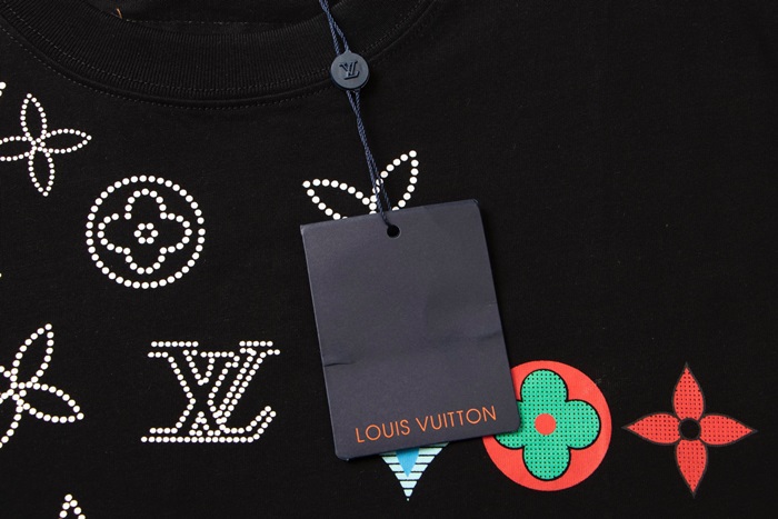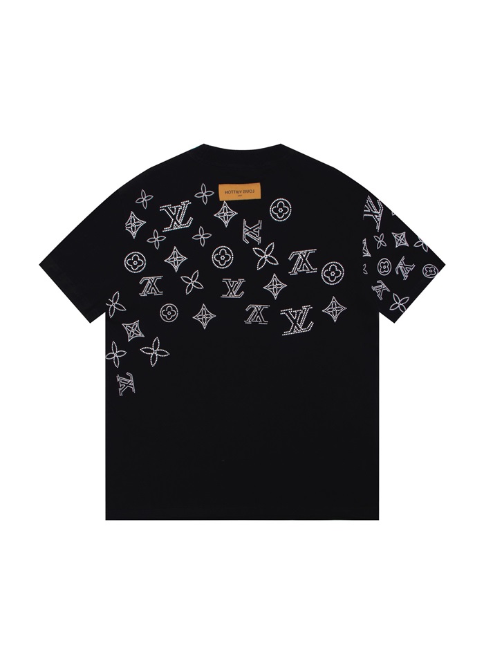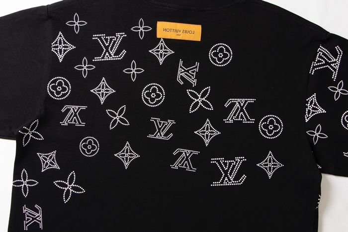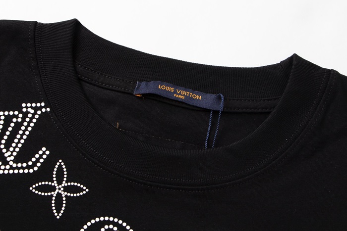 ルイヴィトンメンズブラッククルーネック半袖Tシャツv1091