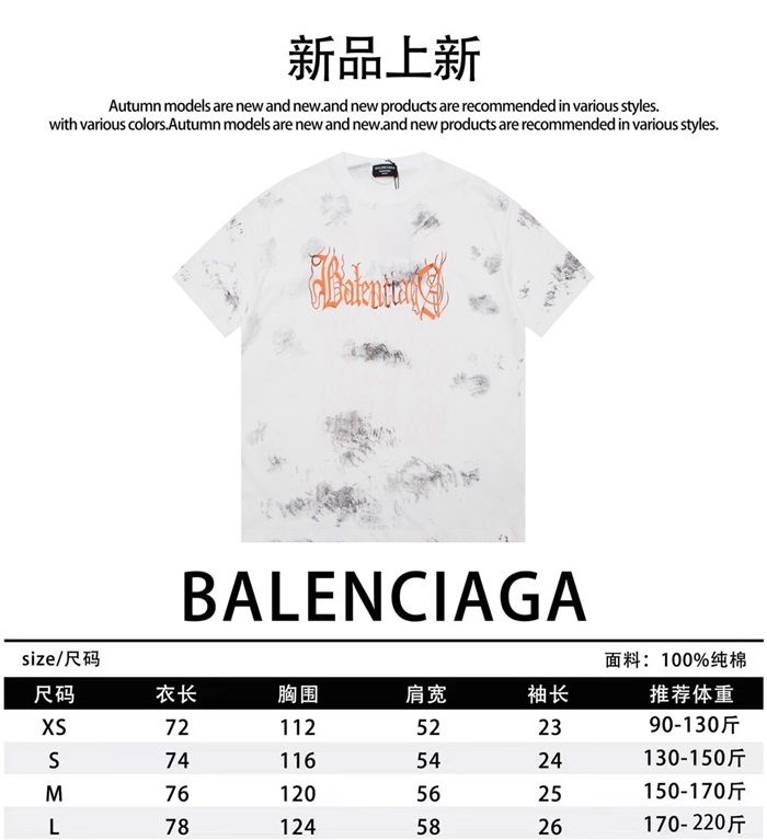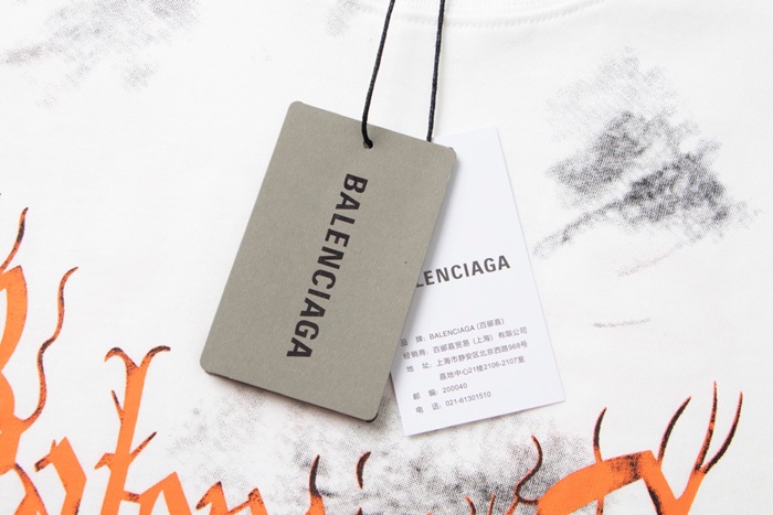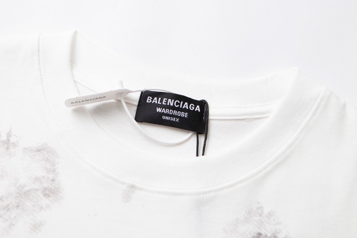 バレンシアガメンズホワイトクルーネック半袖Tシャツa430